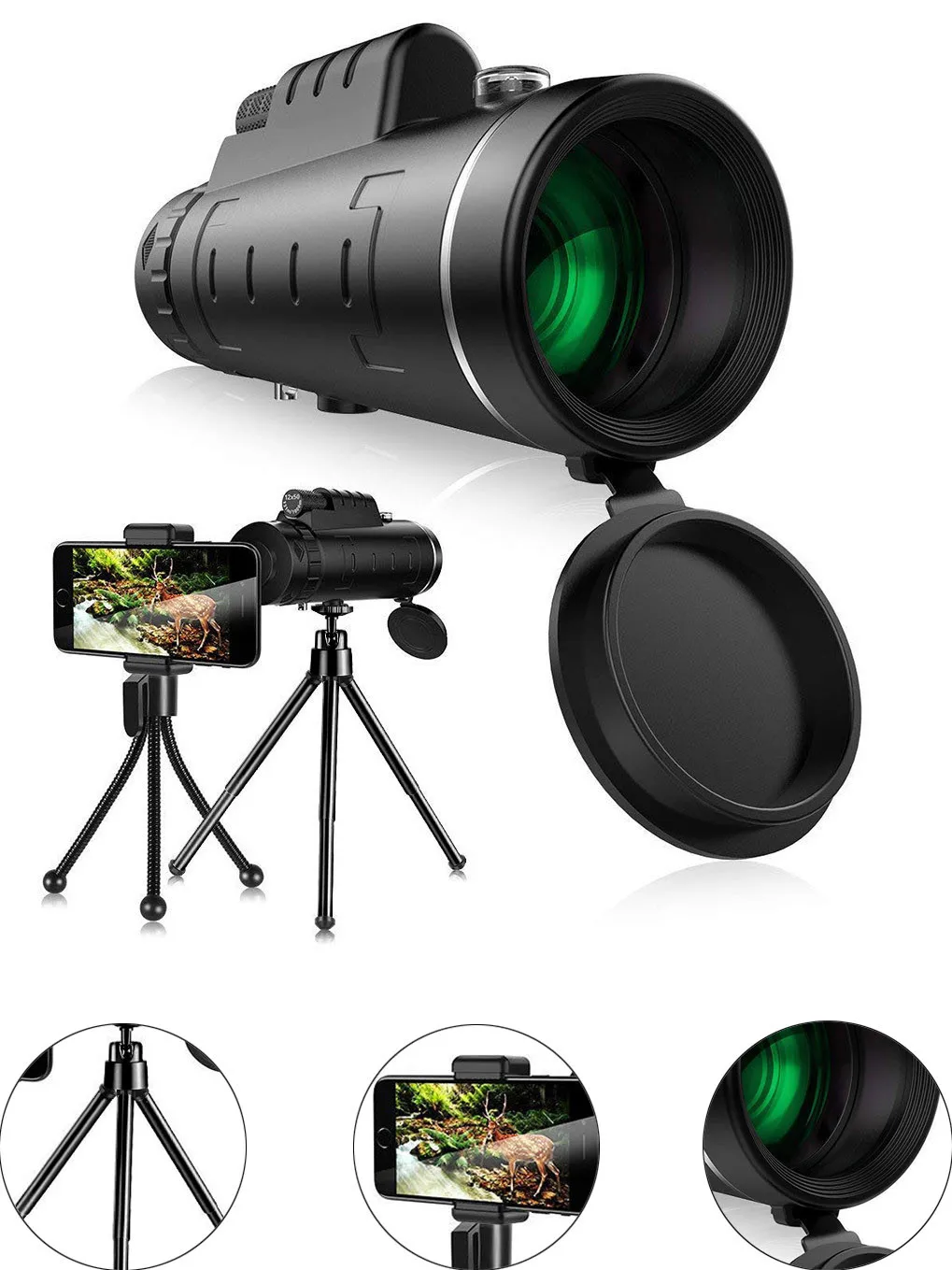 Бесплатный подарок смартфон со штативом-триподом для: Этот Монокуляр телескоп может использоваться со штативом и адаптером для смартфона для удобного просмотра. Смартфон адаптер совместим практически со всеми брендами смартфонов на рынке, таким образом, вы можете снимать красивые изображения и делиться ими со своими друзьями.