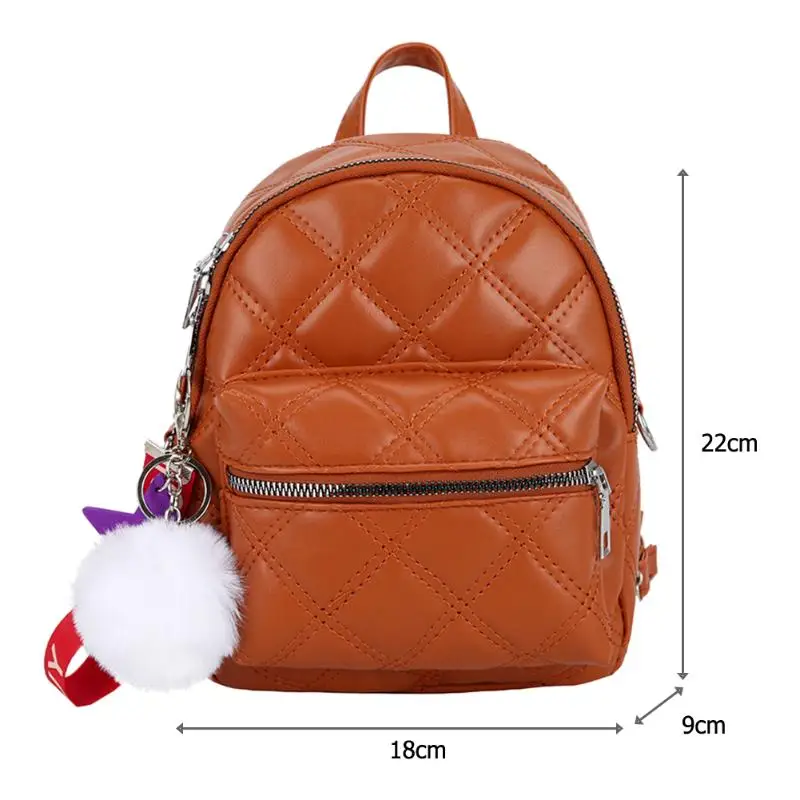Повседневный женский рюкзак из искусственной кожи с узором в клетку и помпономМаленькийОдноцветный рюкзак через плечо для девушек