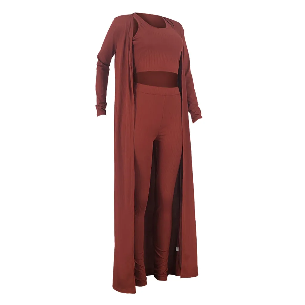 Модный женский однотонный вязаный жилет и брюки, повседневный спортивный костюм из трех предметов