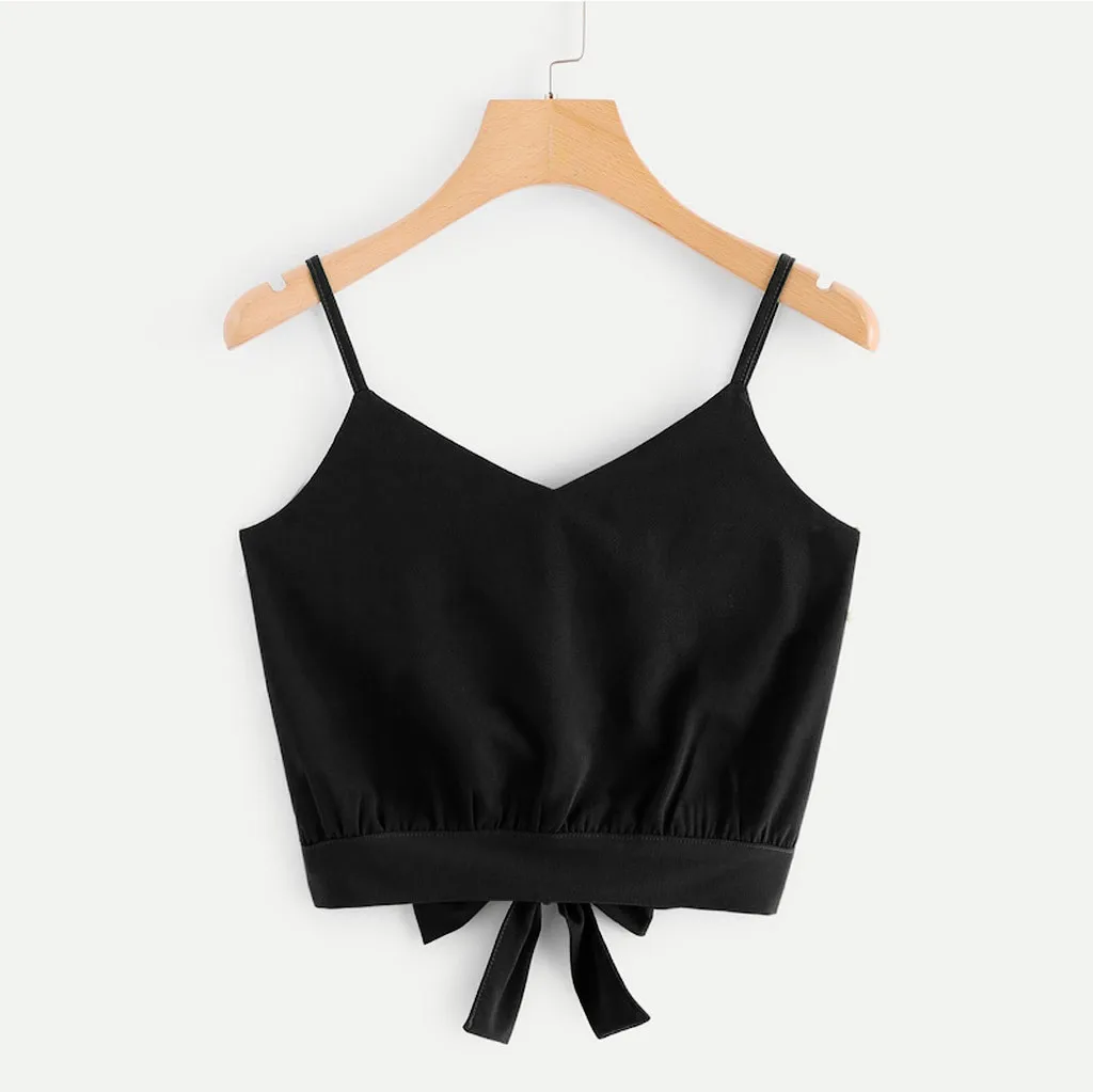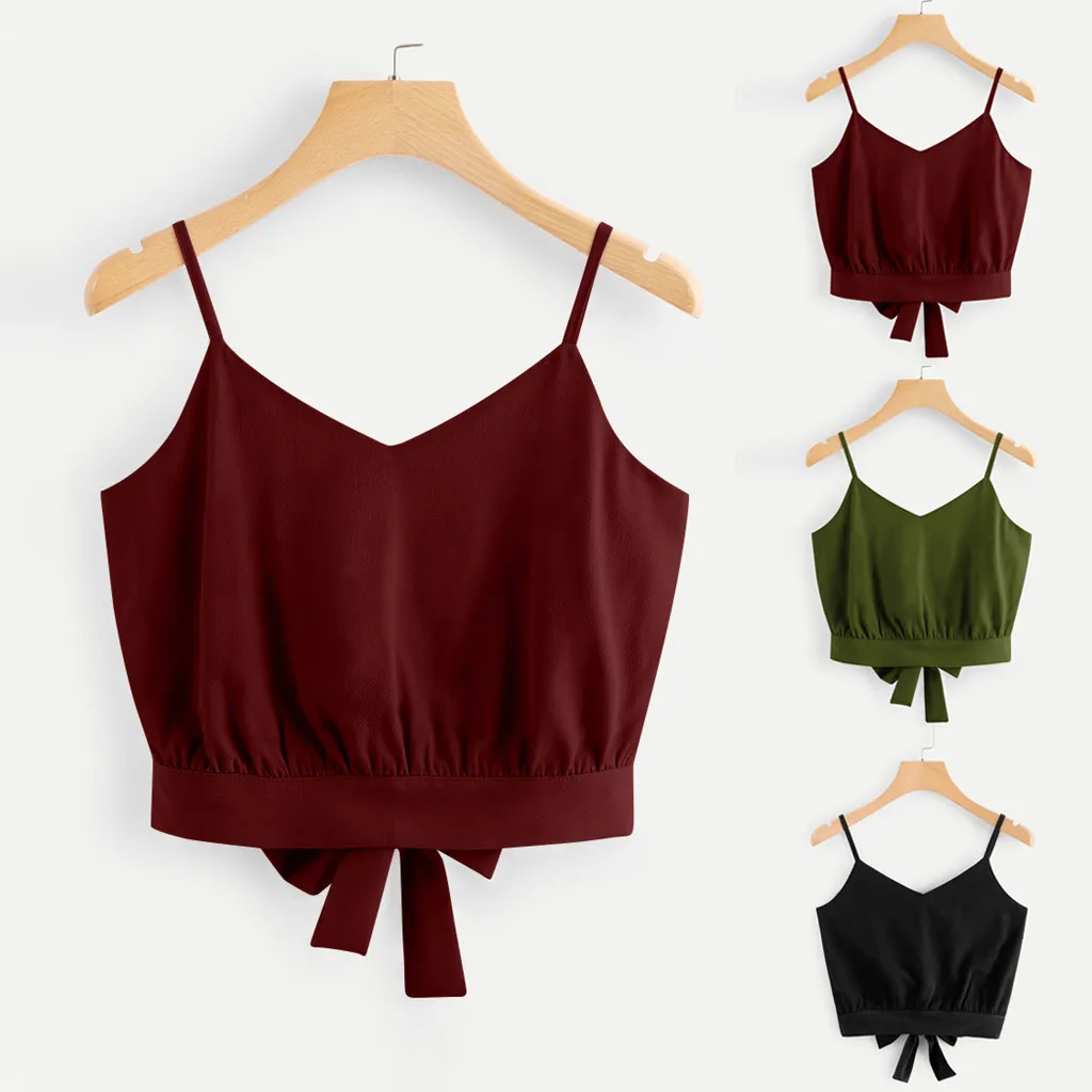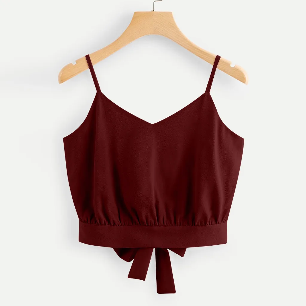 Женский укороченный топ в полоску с бантом и v-образным вырезом на спине