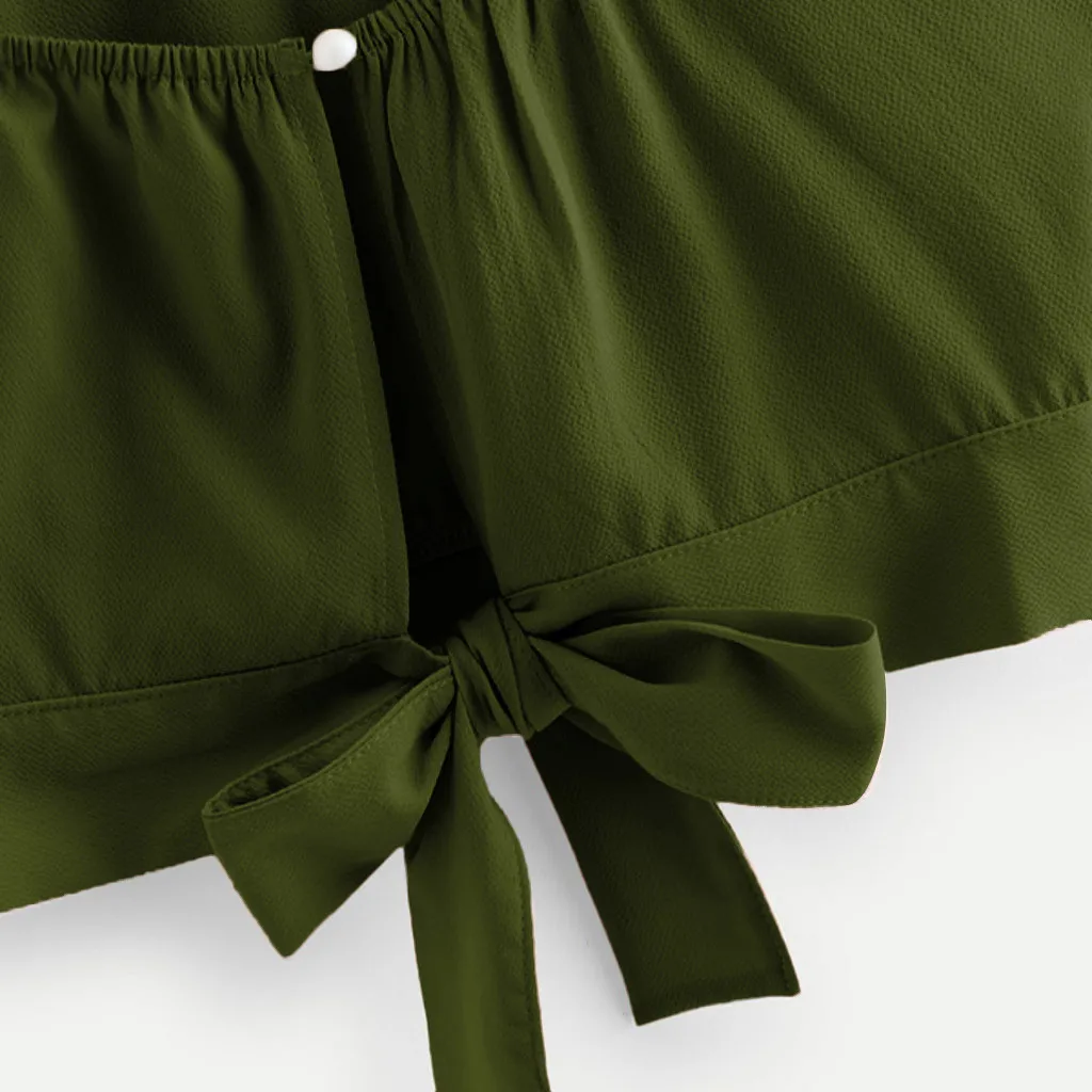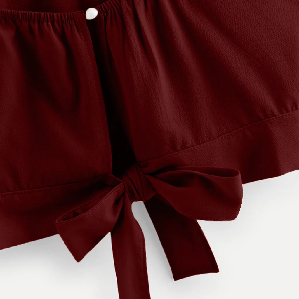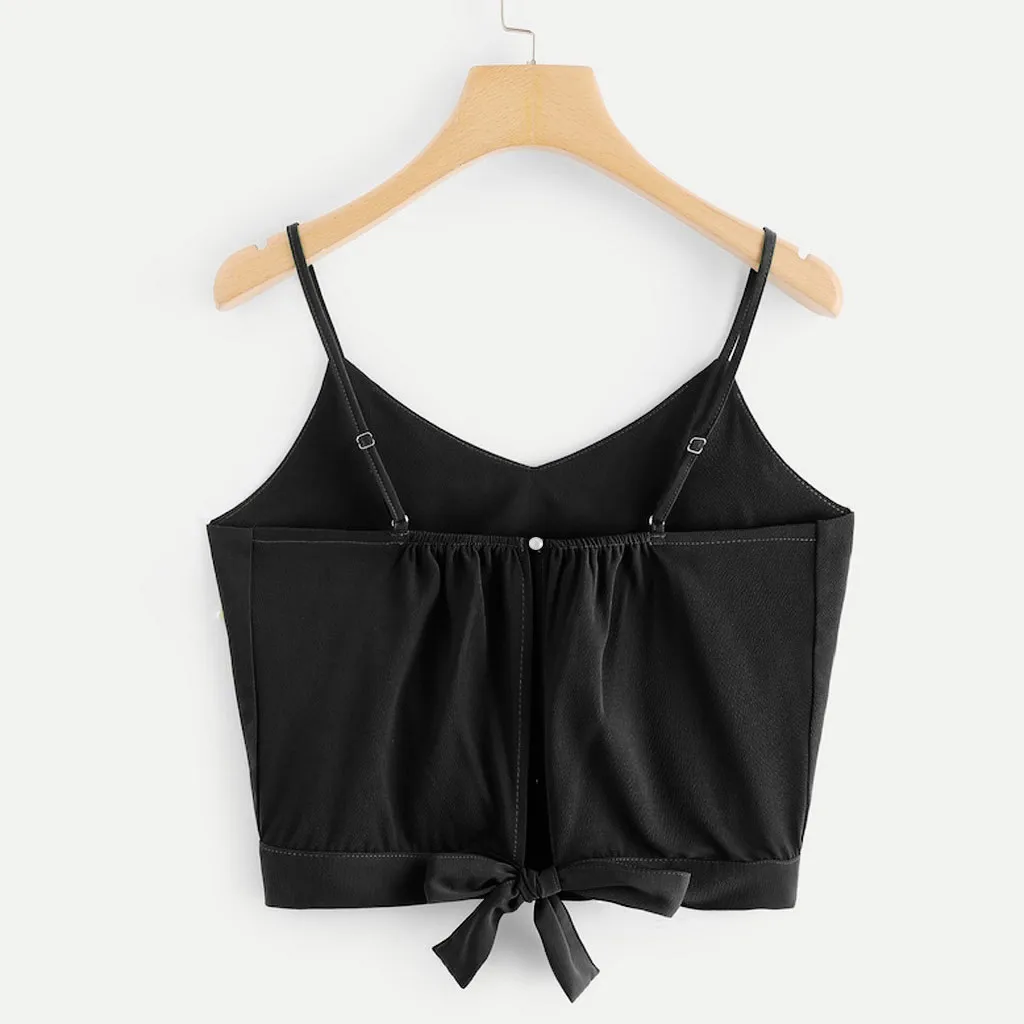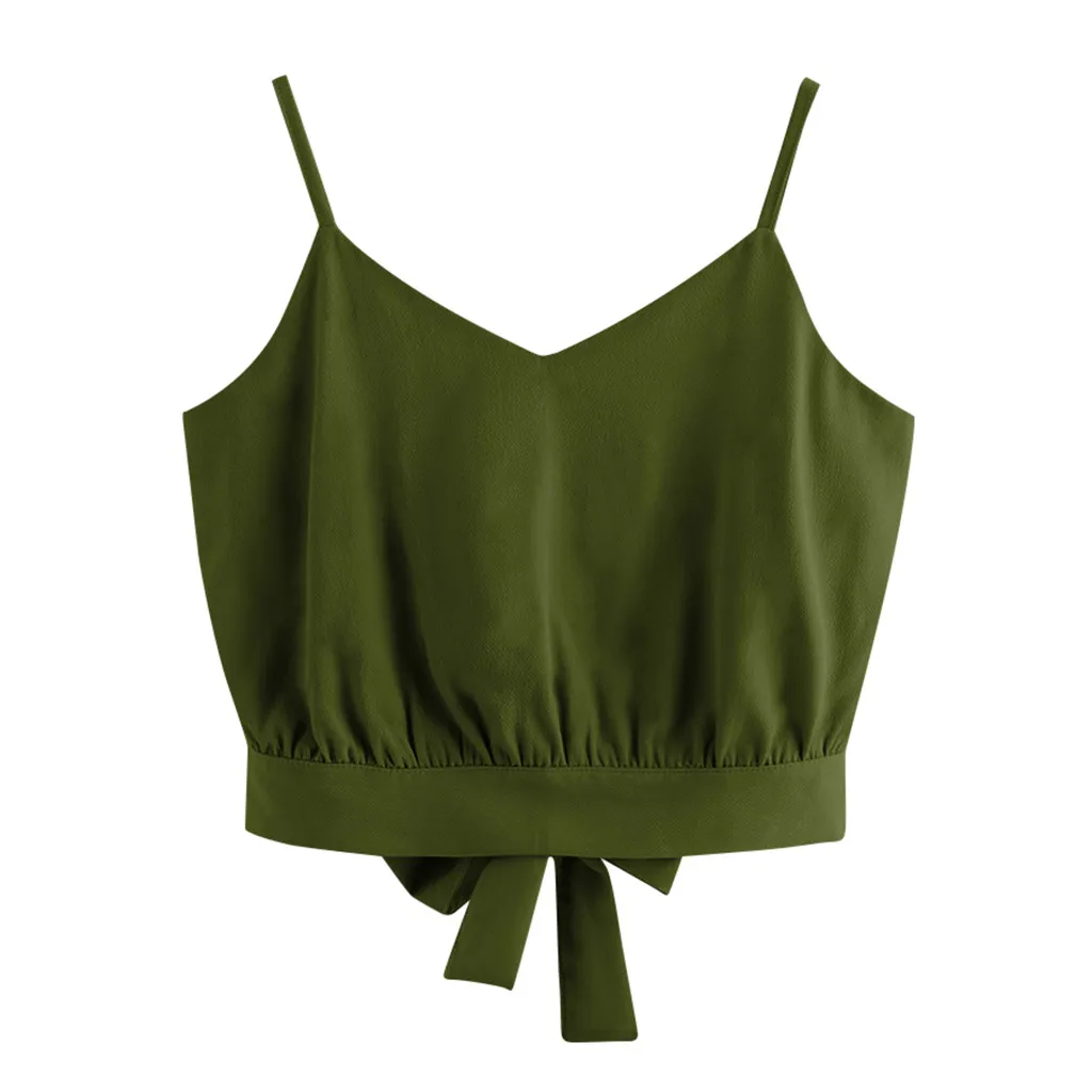Женский укороченный топ в полоску с бантом и v-образным вырезом на спине
