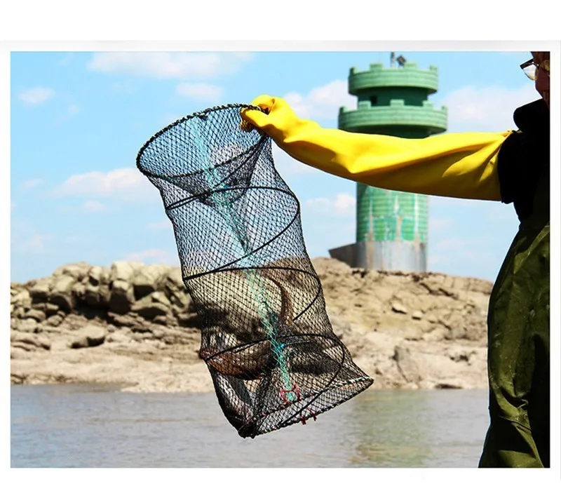 Эластичная Складная усадочная рыболовная сеть с пружинами, для ловли крабов клетки, рыба, креветки, посадочный инструмент, ловушка для раков, нейлоновая сетка