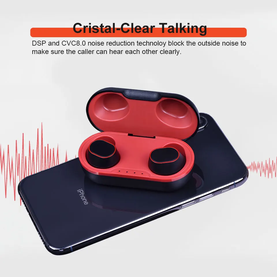 Версия Bluetooth: V5.0 + EDR Диапазон Bluetooth: 10 м/33 фута (свободное пространство) Профили Bluetooth: HSP/HFP/A2DP/AVRCP Частотная характеристика: 20-20 кГц Мощность передачи: ≤ 4dBm Блоки драйвера: 6 мм настоящая медная катушка Сопротивление водителя: 16 Ω T.H.D: <3% @ 1 мВт Емкость аккумулятора: Встроенный 3,7 В 50 мАч перезаряжаемый полимерный аккумулятор * 2 Напряжение зарядки: DC4.7V-5.5V/0.5A-1A Время полной зарядки: 2 часа Время воспроизведения музыки: около 6 ч Время вызова: около 6 ч Время работы в режиме ожидания: 120 ч Вес нетто одного наушника: 4,5 г/0,16 унций Размер: 2,5*1,8*2 см/0,98*0,71*0,79 дюймов