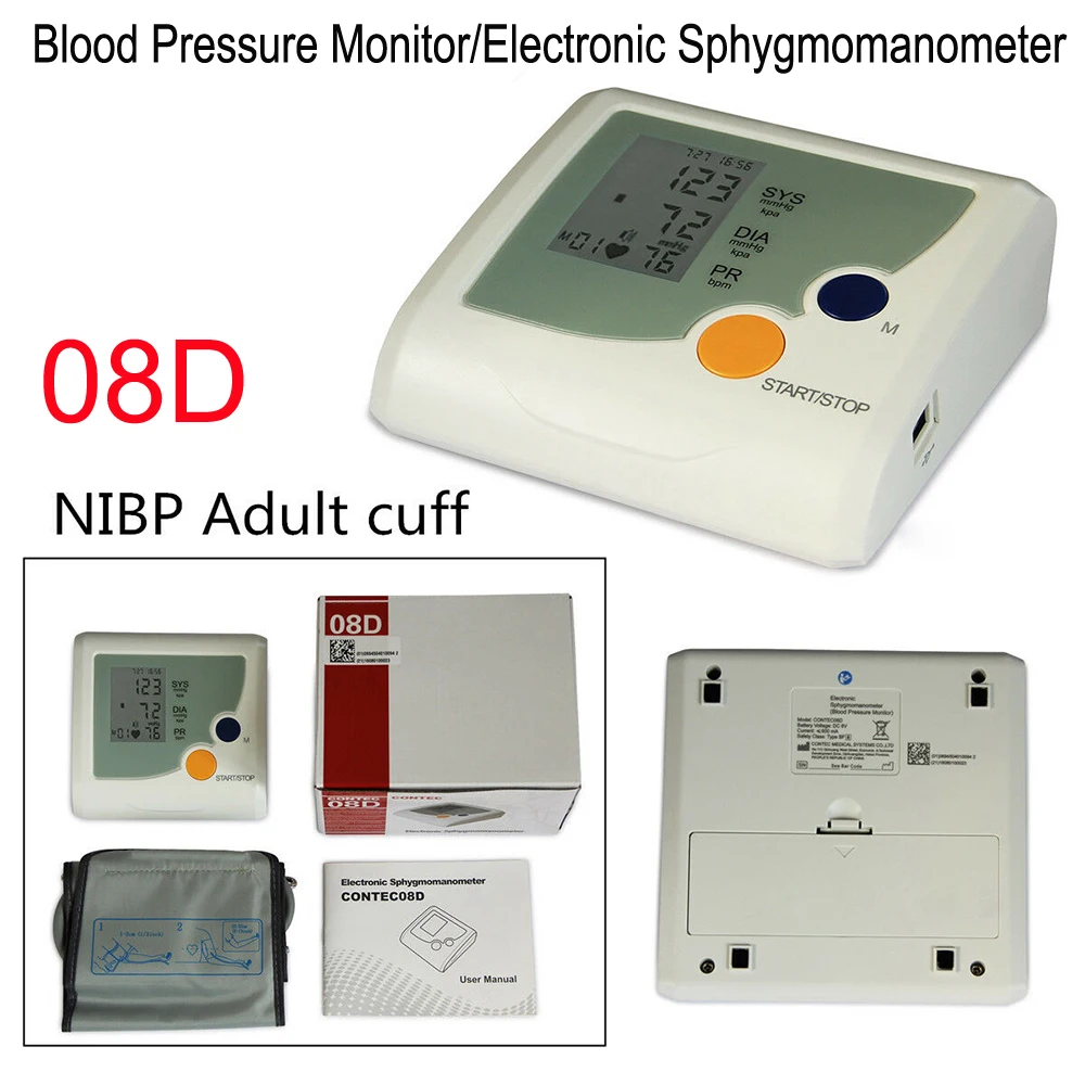 CONTEC08D-это электронный сфигмоманометр с ЖК-дисплеем, имеет лаконичный интерфейс и управление одним ключом, он может точно измерять NIBP и SpO2 (опционально), а записи NIBP могут быть проверены кнопкой памяти. Устройство широко используется в семейном, клиническом и физическом центре для планового тестирования.