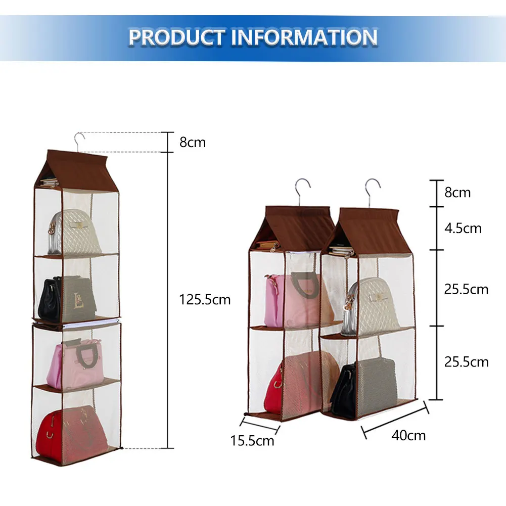 Как организовать сумочки и кошельки? Нужен кошелек-органайзер для ухоженного шкафа? Этот подвесной органайзер для шкафа станет хорошим решением. Вы можете быстро организоваться с этим отделением-органайзером, сохранить ваш гардероб чистым и аккуратным. Макс 6 отсеков позволяет хранить все, от взрослых до детей, такие как сумочки, свитера, игрушки. Прочные металлические вешалки в комплекте, легко висят на стандартном стержне шкафа, чтобы держать neverfull кошелек организованным. Сетчатый прозрачный дизайн позволяет легко просматривать то, что храниться, и выбирать нужный вам, экономит ваше время.