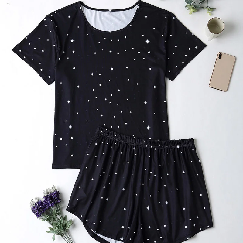 Простые, но шикарные комплекты одежды для сна. Топ с круглым вырезом. Принт с мультяшным алфавитом, небольшие складки и линии увеличивают изюминку.