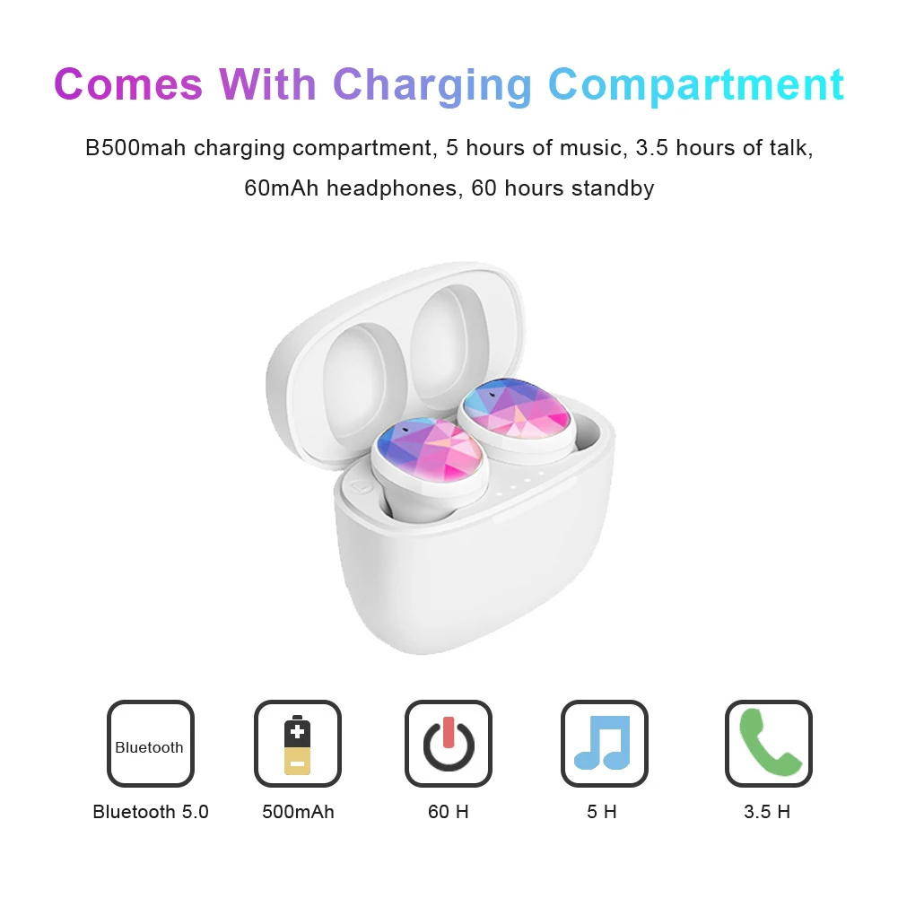 2 * наушники; 1 * зарядный отсек; 1 * зарядный кабель; 4 * Крышка для наушников; 1 * Инструкция по использованию