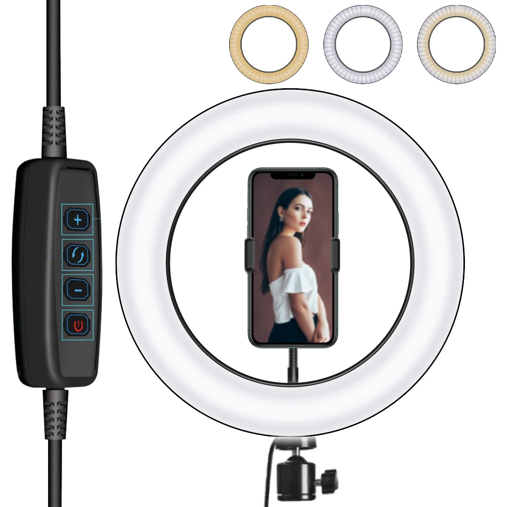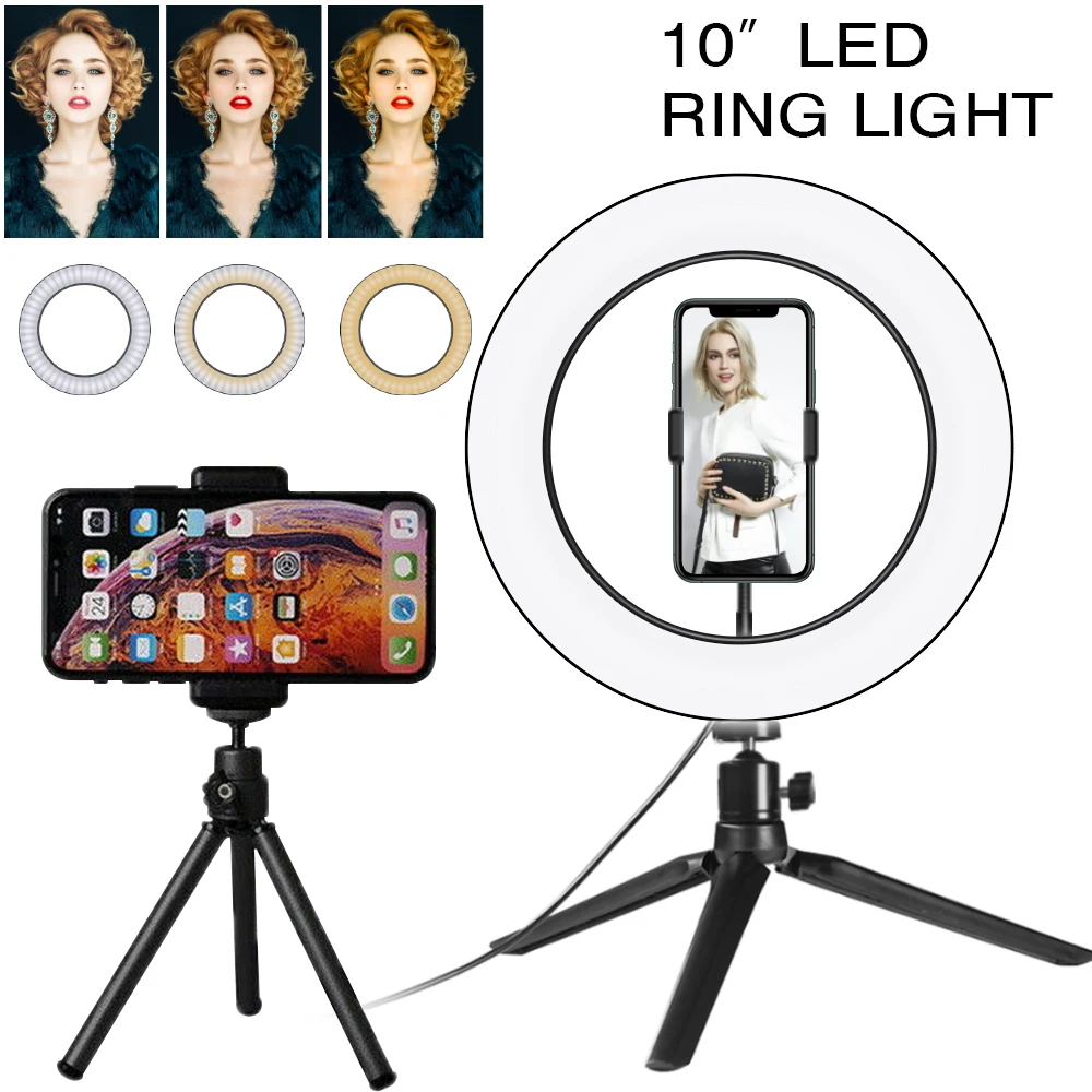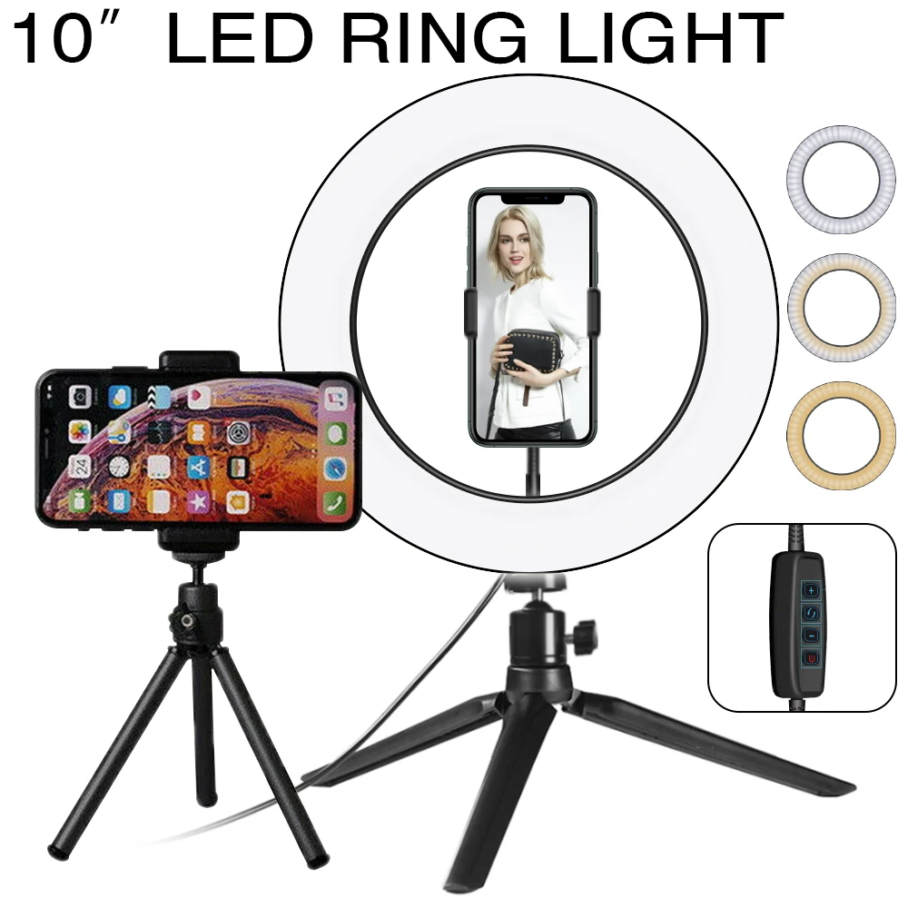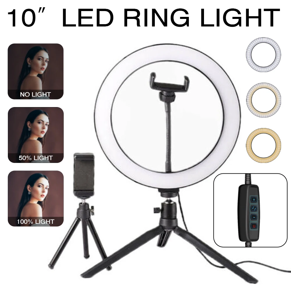 Введение: Как мы все знаем, традиционные лампы накаливания постепенно заменяются новейшим и высокотехнологичным светодиодный кольцевой светильник во многих местах, таких как фотостудия и так далее. Таким образом, сегодня мы хотели бы предложить вам этот 10 "светодиодный кольцевой светильник s и Настольный Штатив с шаровой головкой, которая сочетает в себе очень долгий срок службы, низкое энергопотребление, высокая светильник эффективности и охраны окружающей среды. И он также покрыт прочным материалом, обеспечивая его полную защиту и идеальное рассеивание тепла. Кроме того, наш светодиодный светильник-кольцо может дать яркий и чистый светильник, чтобы защитить ваши глаза и сделать окружающую среду более романтичной и безопасной. Особенности: 1. Компактный размер, разумная цена и высокое качество 2. Отсутствие загрязнения, отсутствие инфракрасного и теплового излучения 3. Это своего рода энергосберегающий и высокоэффективный продукт 4. Ультра Энергоэффективная замена стандартной лампы 5. Обеспечивает яркий и мягкий светильник, подходит для фотостудии светильник ing 6. Легкий, вы можете установить его в течение нескольких минут Технические характеристики: 1. Особенности: новый стиль 2. Мощность: 0-10 Вт 3. Цветовая температура: 2800-5500K 4. Высота стойки (штатив сочетается с селфи-палкой): мин 38,3 см, Макс 103 см (светильник не входит в комплект) 5. Длина кабеля: прибл. 200 см 6. Цвет: черный 7. Внешний диаметр: 10" 8. Бусины лампы: 80 шт. 9. Интерфейс: USB интерфейс