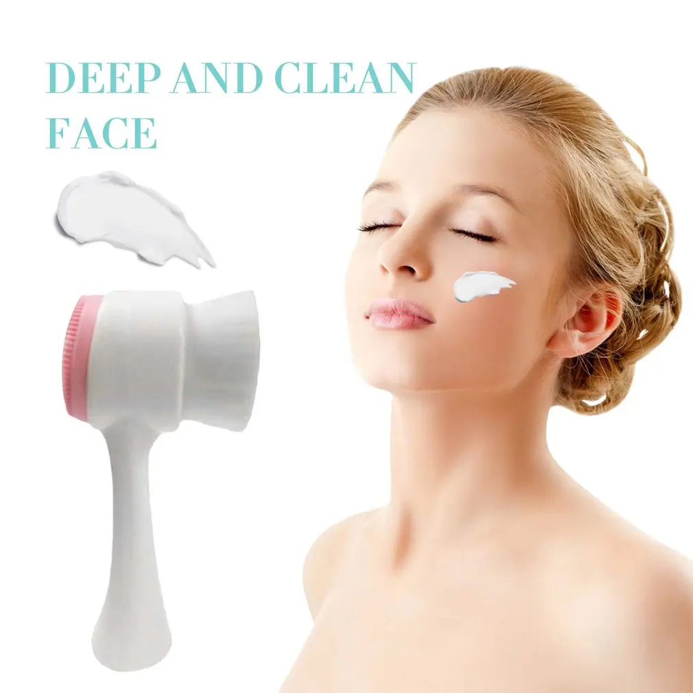 Двухсторонняя силиконовая Очищающая щетка для лица портативный размер 3D массажное средство для чистки лица Вибрирующая кисть для ухода за кожей
