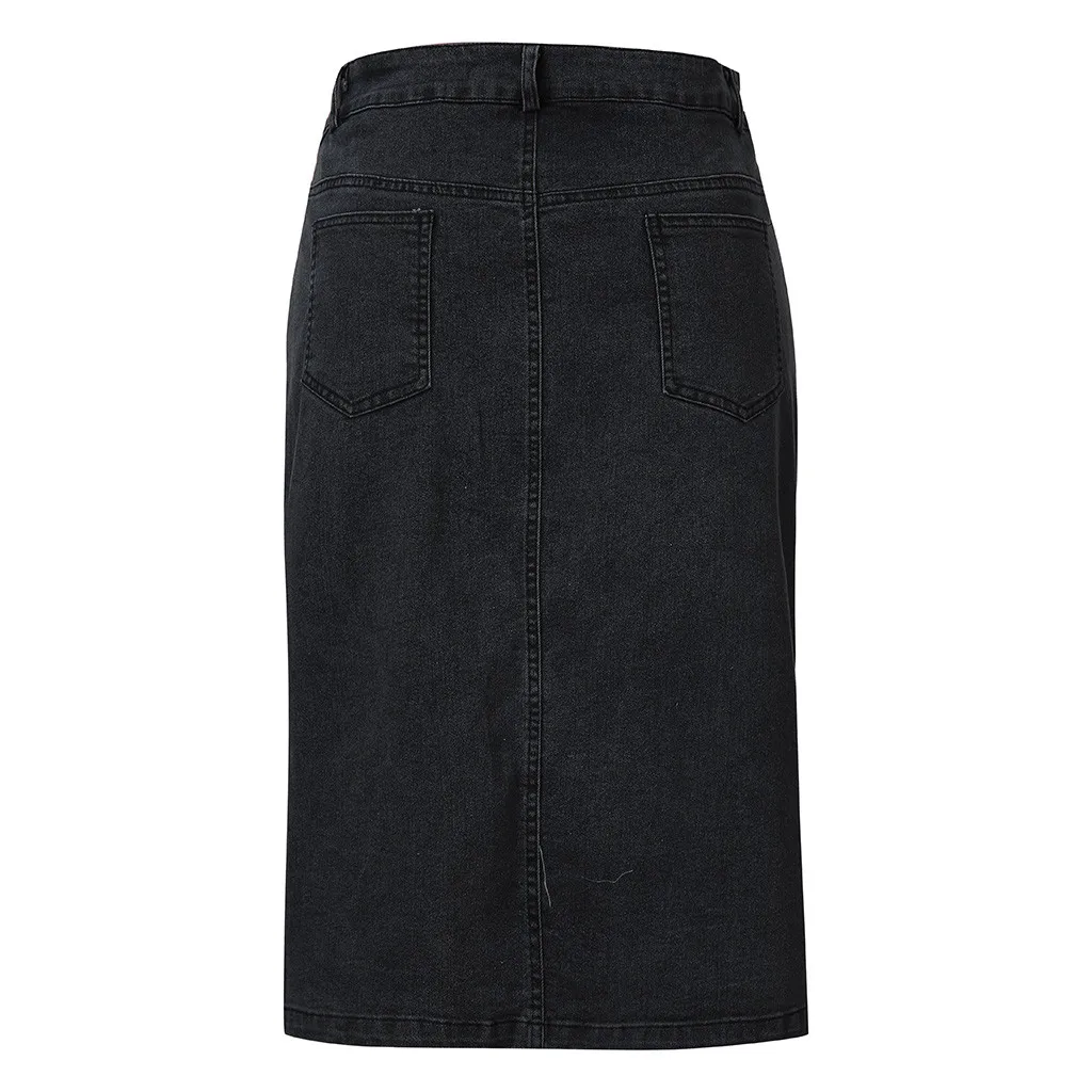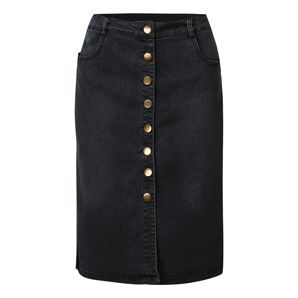 Женская джинсовая юбка Jaycosin, летняя дизайнерская юбка с разрезом спереди на пуговицах, Повседневная Однотонная юбка до колена, 2020