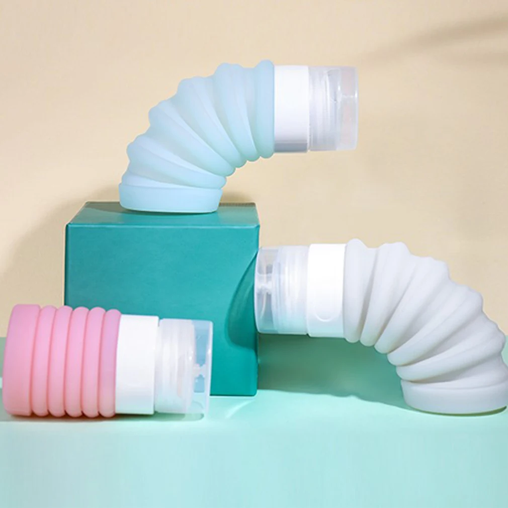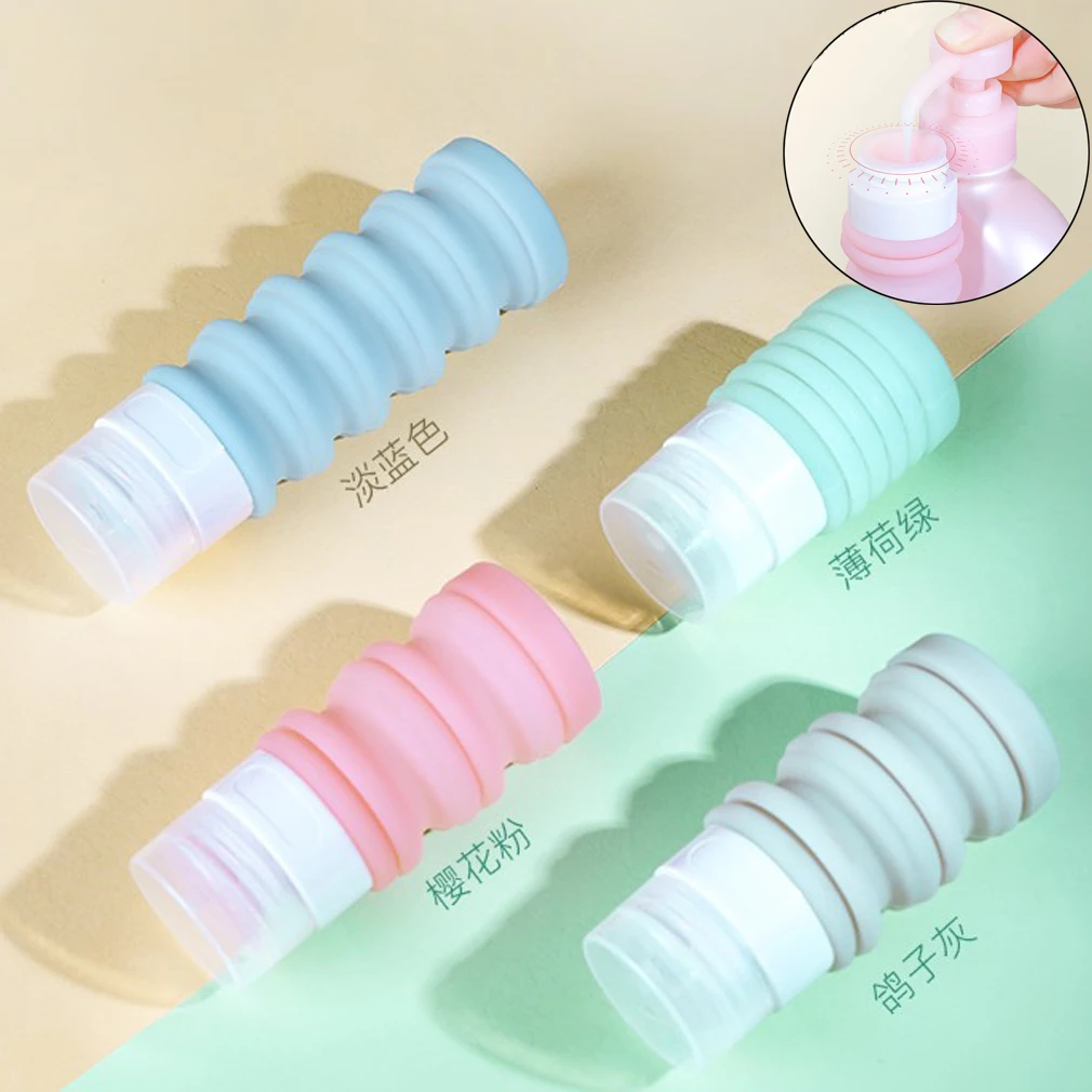 4.Дизайн:Трехслойные силиконовые бутылки для путешествий, герметичный дизайн, хороший эффект герметизации, использование сплит-дизайна, от дорожных бутылок, колпачков для бутылок, узких мест состоит из трех частей.