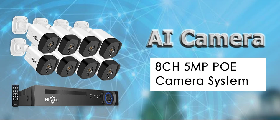 Hiseeu 8CH 5MP POE NVR комплект H.265 охранная камера система аудио запись AI IP камера Открытый Водонепроницаемый P2P комплект видеонаблюдения
