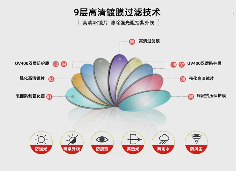 (Полноцветные линзы, поляризованные линзы, прозрачные линзы, серебристые линзы, желтые линзы)