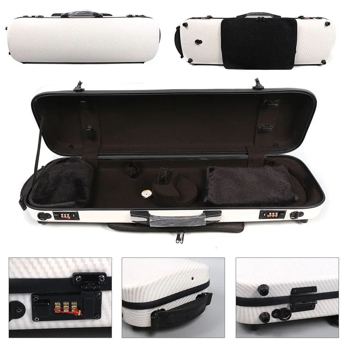 Новая модель из смешанного углеродного волокна 4/4 Чехол для скрипки жесткий бокс #226 1) Высокая устойчивость к сжатию. С сумкой для музыкальных простыней. 2) углеродное волокно мастер сильный светильник и прекрасное качество изготовления. 3) шейные ремни на липучке и мягкие фиксаторы для шеи. 4) Отделение для канифоли и аксессуаров. Пряжка для надежного закрытия 5) Вес: 2,1 кг 6) плечевые ремни предназначены для комфорта, в соответствии со структурой человеческого тела чехол для скрипки используется о таможенной пошлине и важно