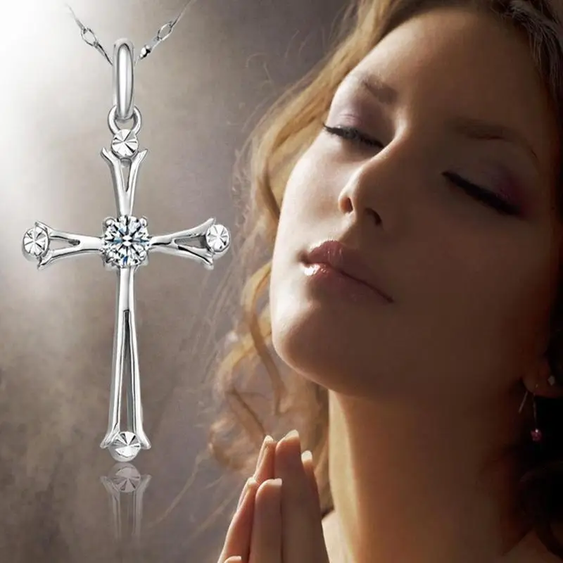 Кристалл Иисуса Креста ожерелье невесты серебряный один кристалл кулон Женская мода свадьба ключицы цепь молитва христианские ювелирные изделия