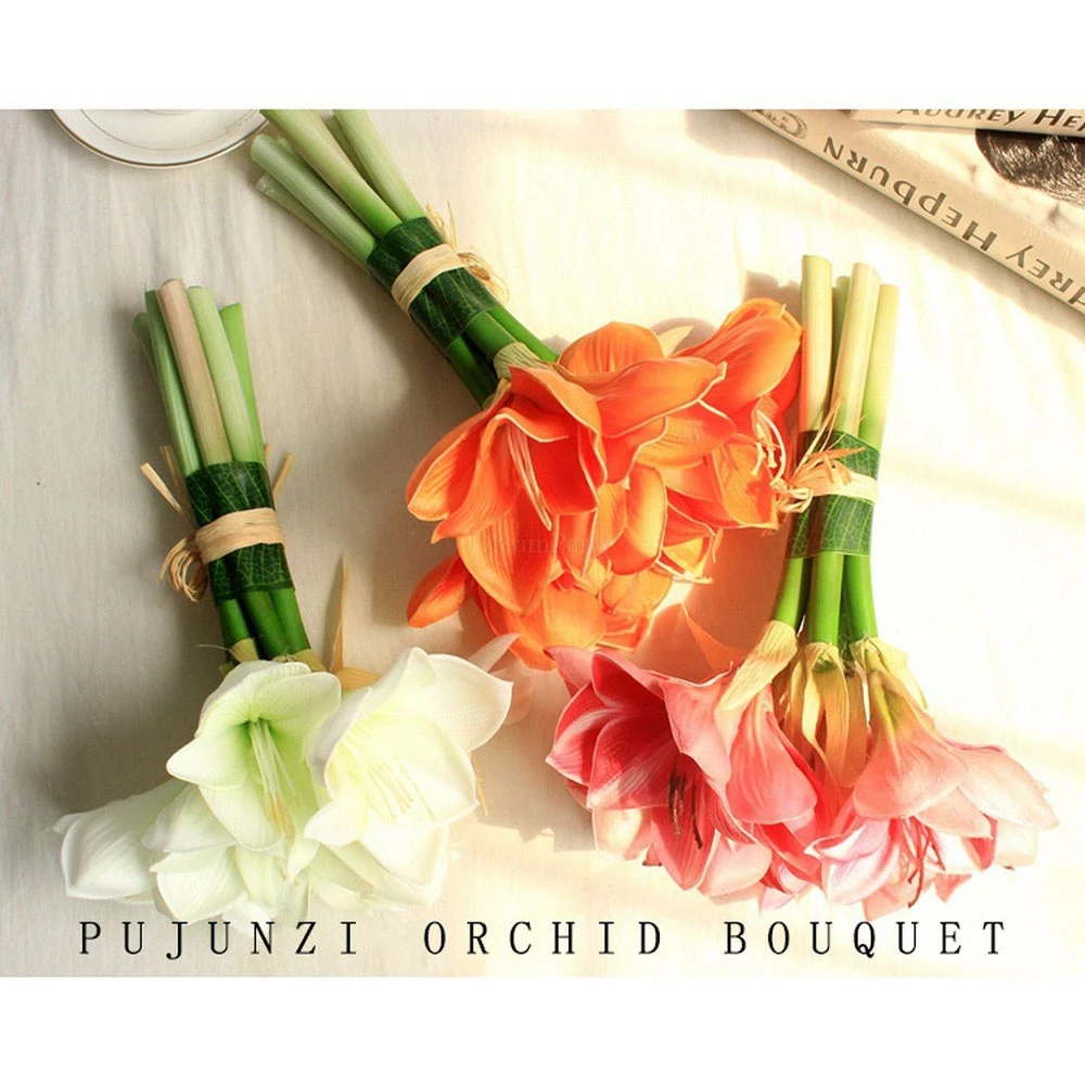Настоящее прикосновение PU Буш цветы лилии Свадебный букет искусственная Орхидея искусственный цветок ручной Войлок Clivia Miniata