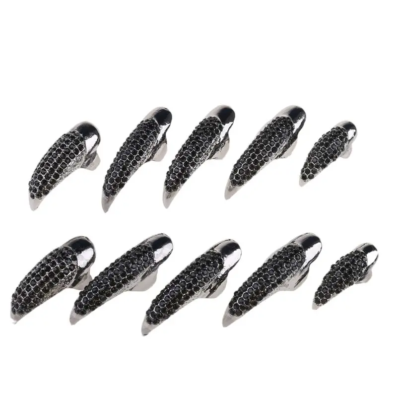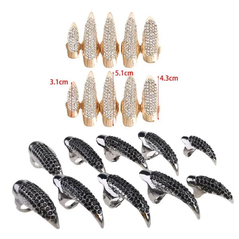 10 шт., костюм на Хэллоуин, когти, поддельные ногти, набор колец, готический панк, 3 размера, Кристальные полные, кольца на палец, мощеные лапы, кончики пальцев, коготь для ногтей для девочек и мужчин