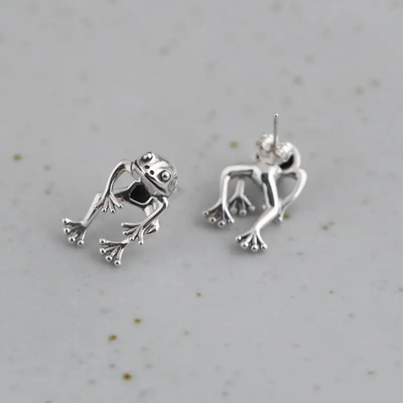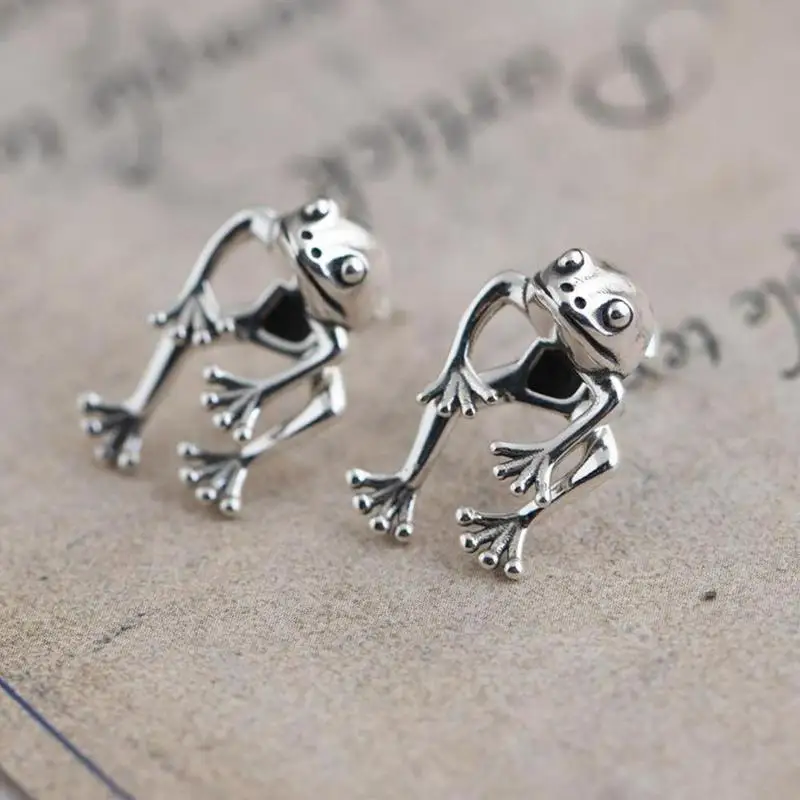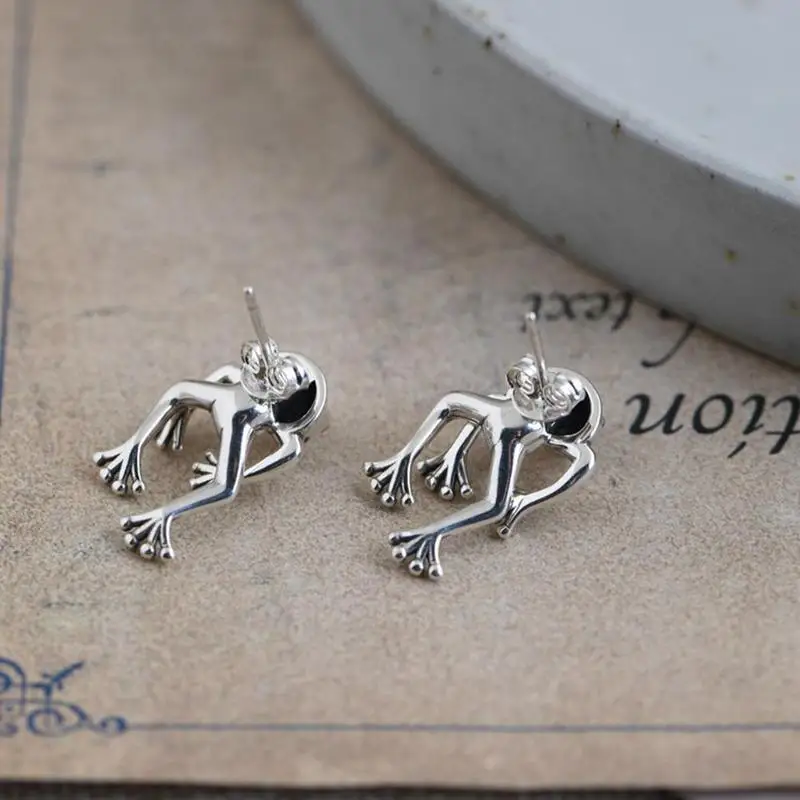 Женские винтажные серьги-лягушки в этническом стиле, Ретро стиль, серебряные серьги без пирсинг ушей