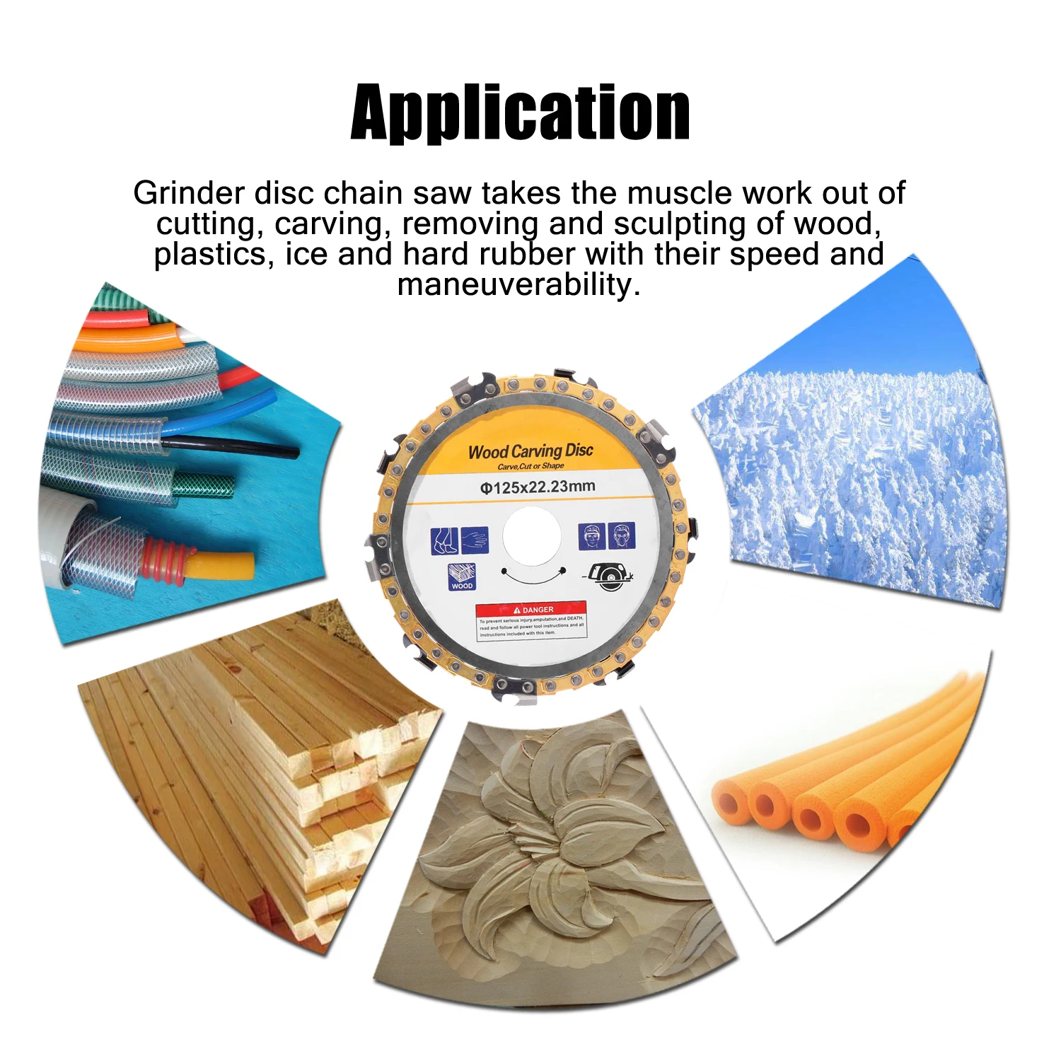 Шлифовальный диск цепная пила принимает мышцы работы резки, резьбы, удаления и скульптуры древесины, пластмассы, льда и твердой резины с их скоростью и маневренности.