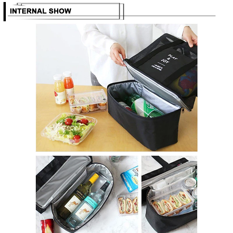 Термоизолированный Ланч-бокс, сумка-холодильник, сумка-тоут Bento, контейнер для ланча, переносные сетчатые сумки для хранения на плечо