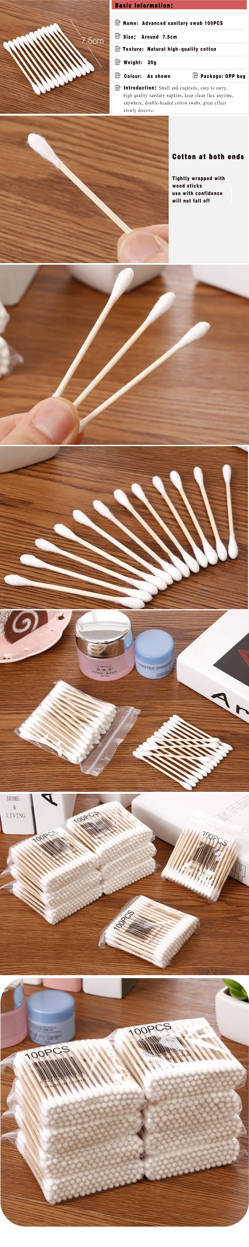 100 шт/50 шт ватные тампоны с двойной головкой бамбуковые ватные палочки деревянные одноразовые палочки хлопок для красоты макияж нос Чистка ушей