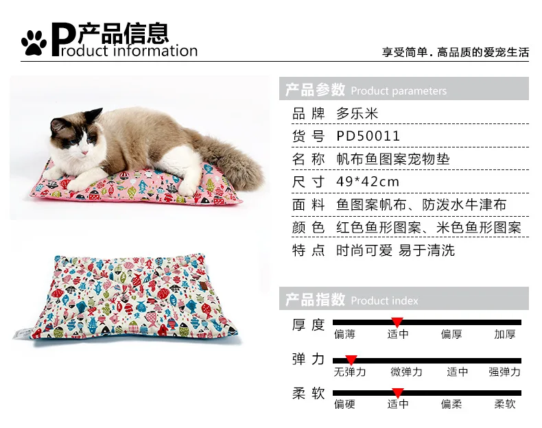 Название продукта: домашняя палатка для домашних животных Размер: один размер, размер: 40*40*35 см Цвет: розовый, синий Материал: парусина, Оксфорд Вес: 295 г Название продукта: коврик для кошки, подушка для питомца Размер: один размер 49*42 см Цвет: розовый, синий Материал: парусина, Оксфорд Вес: 136 г Название продукта: кровать-гамак для кошек Размер: один размер 45*45 см, возможность поддержки кошек в пределах 5 кг Цвет: розовый, синий Материал: Ткань: парусина, низ: Оксфорд Вес: 109 г Особенности: Изысканный Дизайн: с одной стороны имеется много узоров, призванных притягивать внимание домашних животных Порадуйте своего питомца: удобная кровать для питомца! Подходит для кошек, хорьков, кроликов, шиншиллы Высококачественные и прочные материалы: теплые и удобные. Легко моется. Ручная стирка или стиральная машина Гамак складной и экономит место. Обеспечить комфортное и комфортное место для ваших кошек, кроликов, хорьков, шиншиллов и других маленьких животных Легко зажимать мебель в клетках и стульях для домашних животных. Если нет крючка, найдите ленту или другой предмет, прикрепленный к мебели, и затяните гамак.