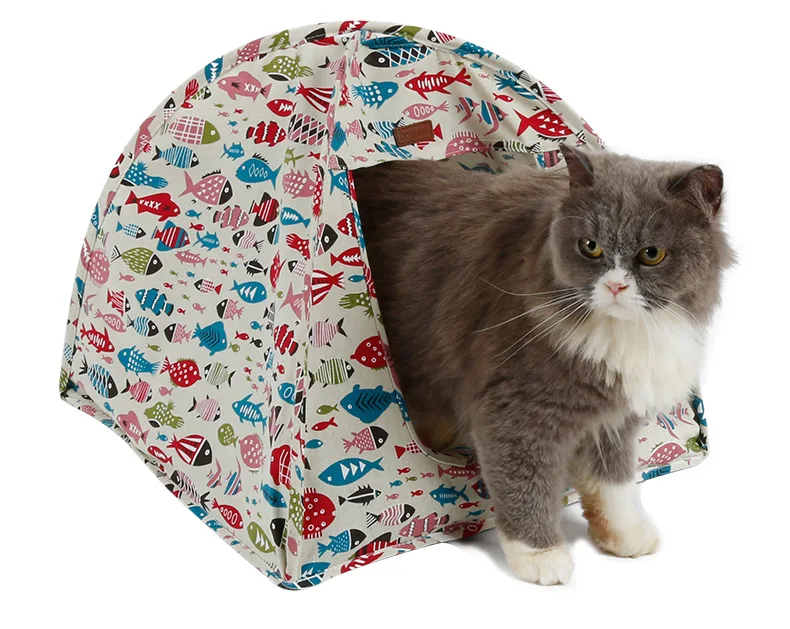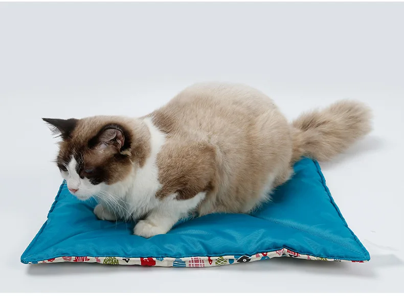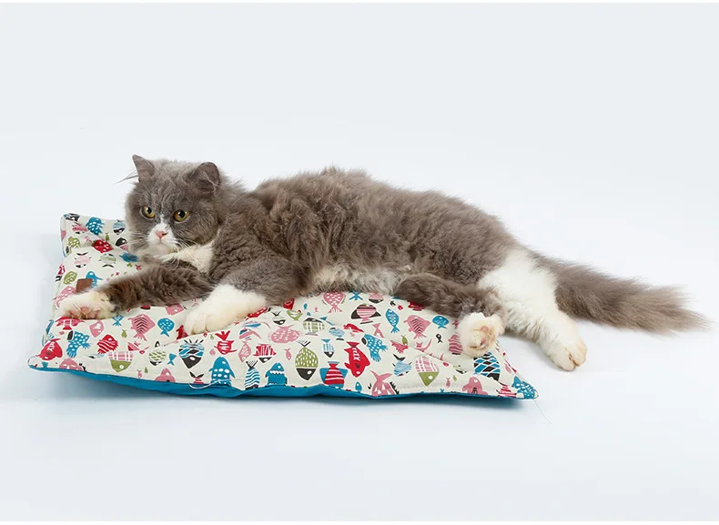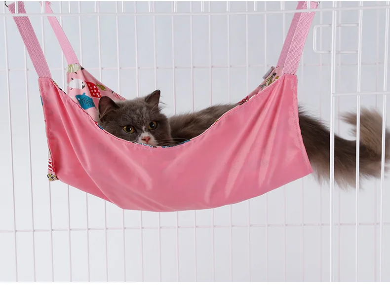 Двусторонний Коврик для кошек и кошек, двусторонний хлопковый холст с 2 боковыми клетками для домашних кошек и рыбок, подвесная кровать с рисунком