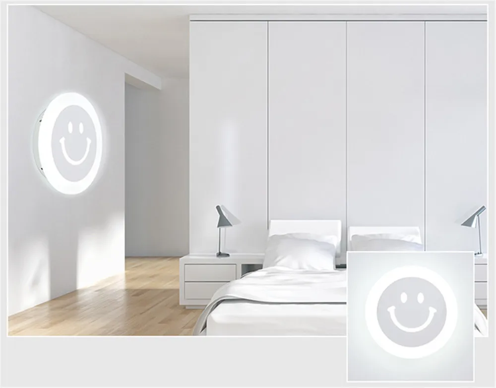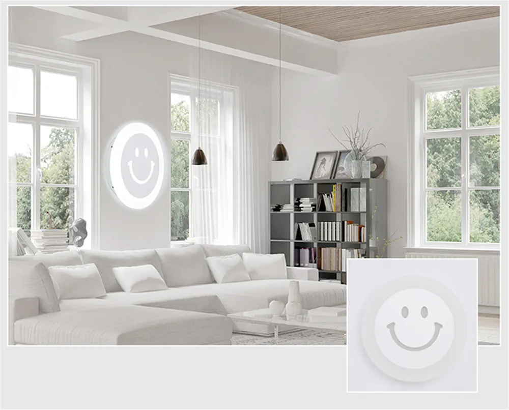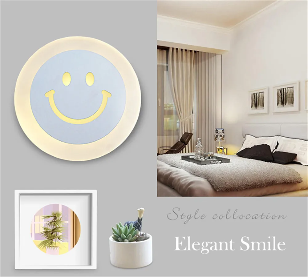 Креативный светодиодный настенный светильник со смайликом простой детский мультяшный светильник для спальни ультратонкий акриловый светильник для крыльца