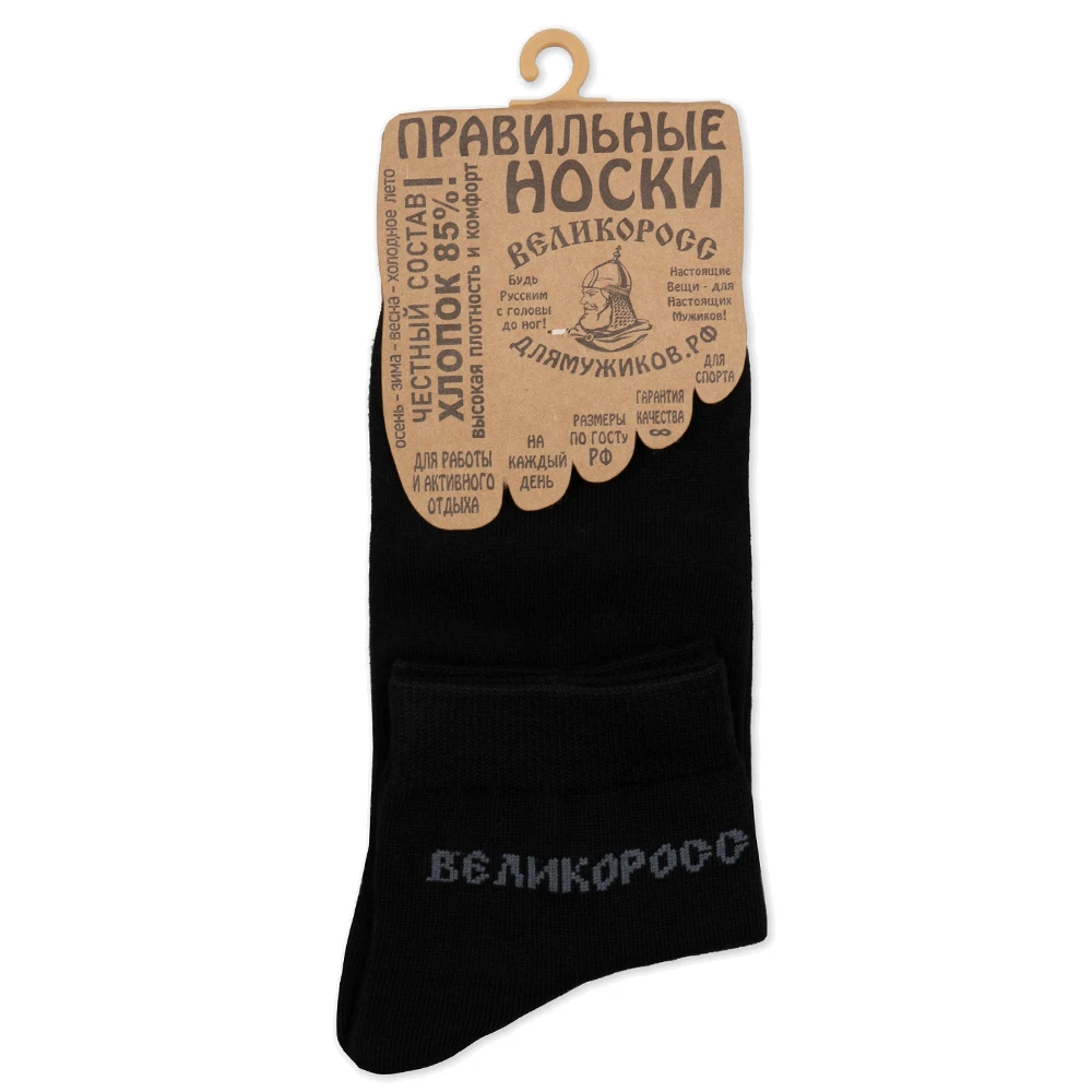 Носки Великоросс содержат 85% натурального хлопка, что гарантирует идеальный комфорт и долгий срок службы .
