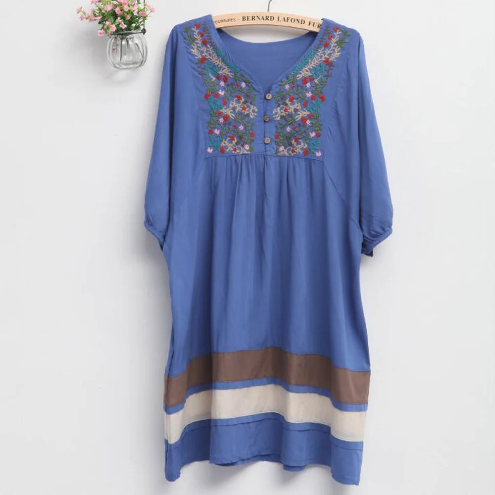 Название: Свободное платье с коротким рукавом и цветочным рисунком; Пляжный сарафан с вышивкой; Модная мешковатая Туника; Повседневное платье в стиле мексиканских женщин; Летние платья; 70s