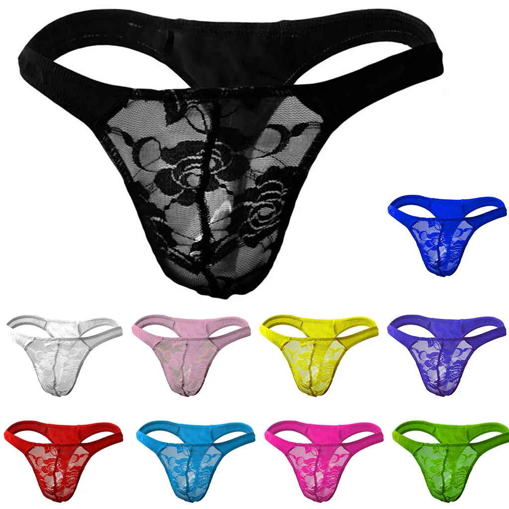 Мужское сексуальное нижнее белье, кружевные сетчатые стринги, трусики-брифы