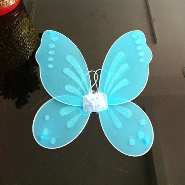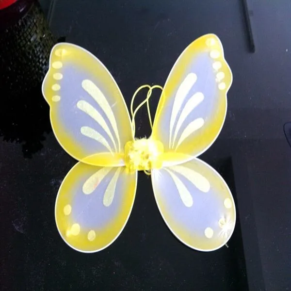 Крылья выполнены из проволоки с натянутым на него нейлоновым (чулочным материалом), перьевым акцентом сзади, и двумя эластичными лямками для ношения.