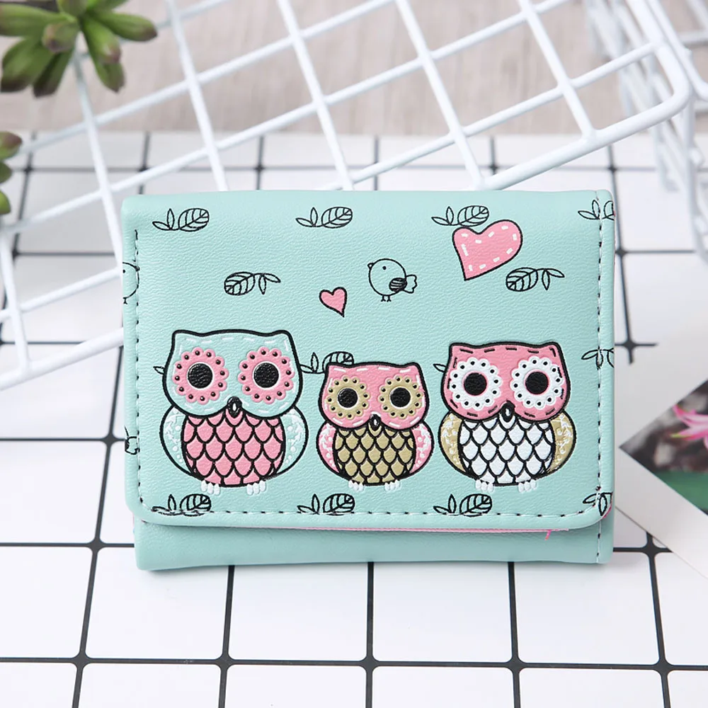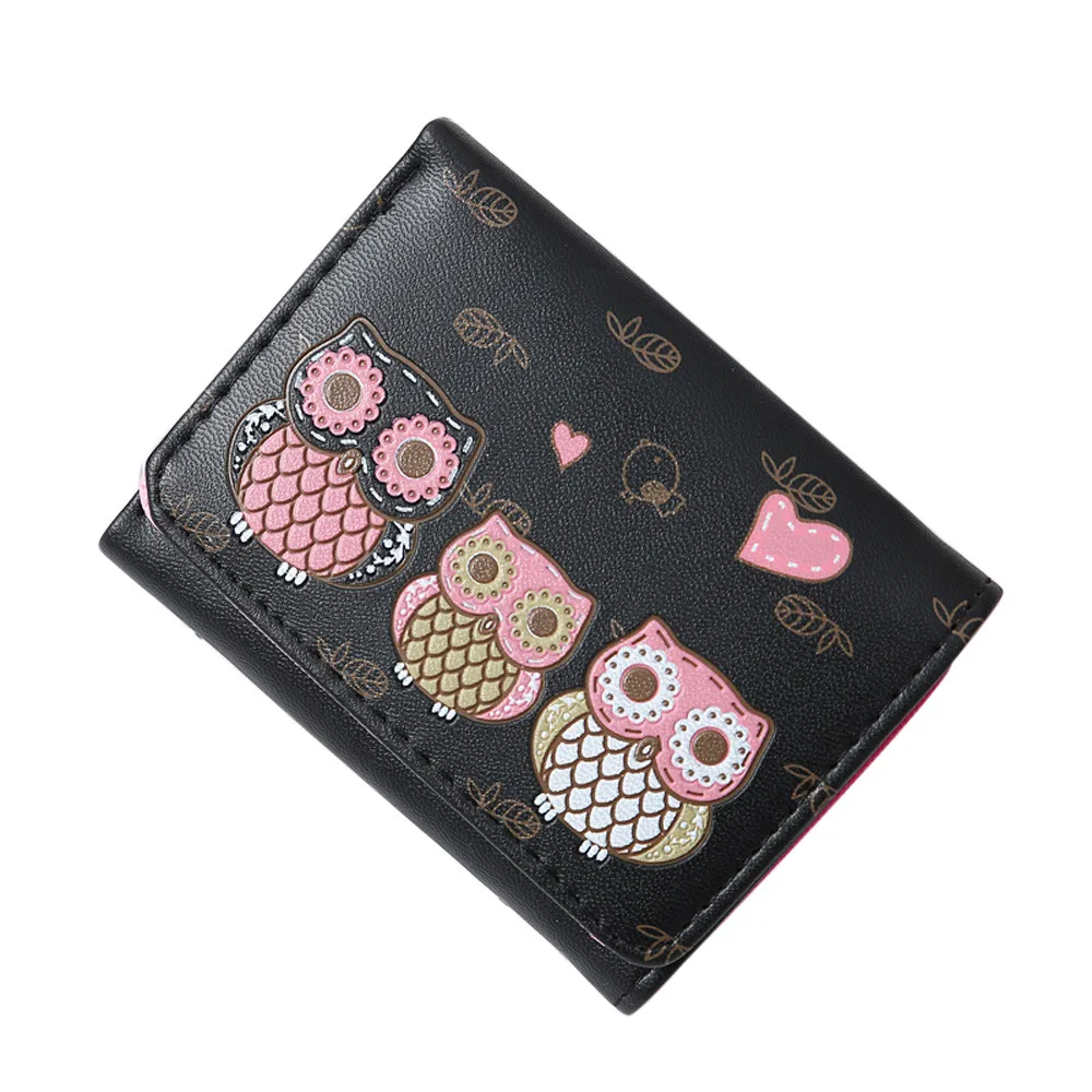 Женский простой ретро кошелек с принтом совы, короткий кошелек для монет, визитница, сумочка