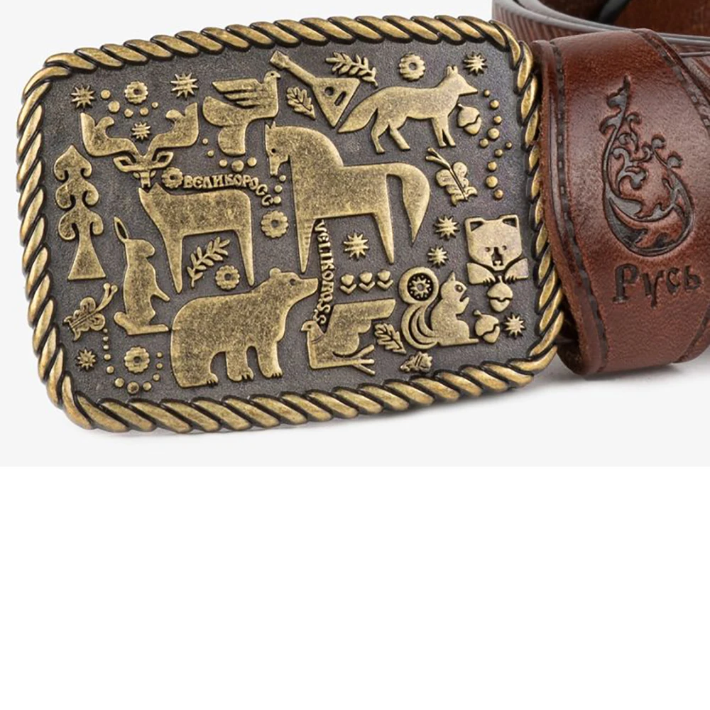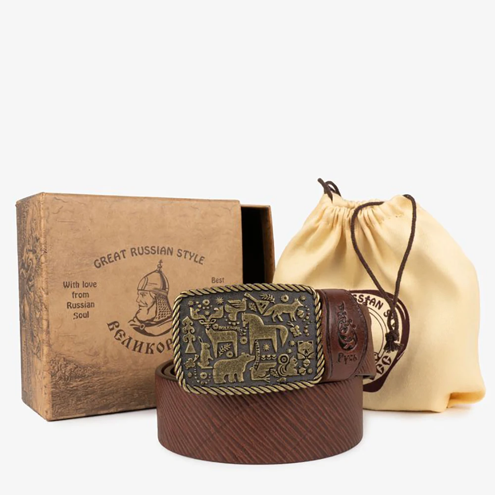 Сказочная бляха из мельхиоровых сплавов цвета старого золота на натуральной воловьей кожей с фирменным горячим тиснением и Русской символикой!