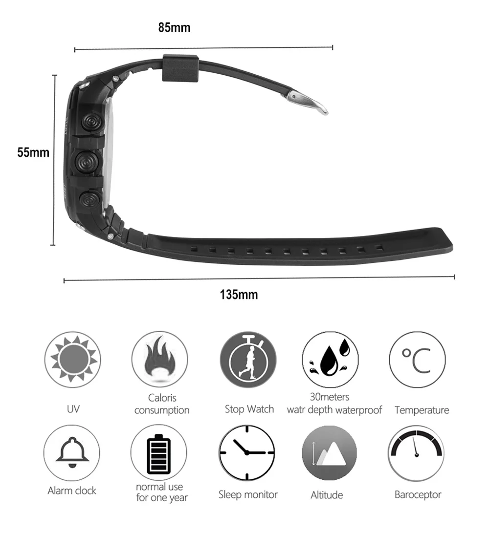 УФ, потребление калорий, секундомер, 30 метров Водонепроницаемость, температура