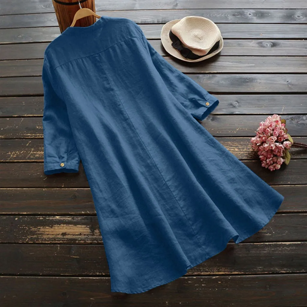 Женская Повседневная Свободная льняная Однотонная рубашка с длинными рукавами и пуговицами, топы