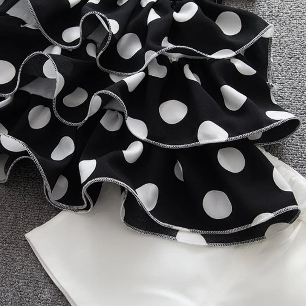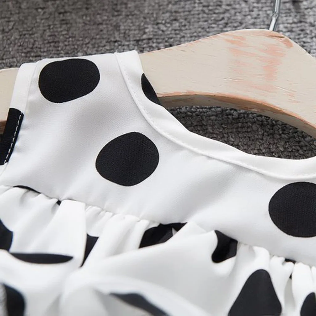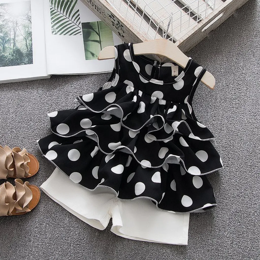 Нарядное платье в горошек без рукавов с оборками для маленьких девочек комплект с топами и шортами
