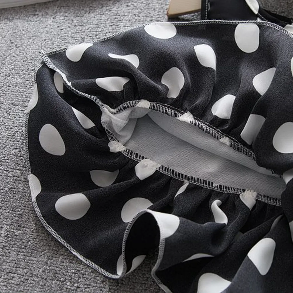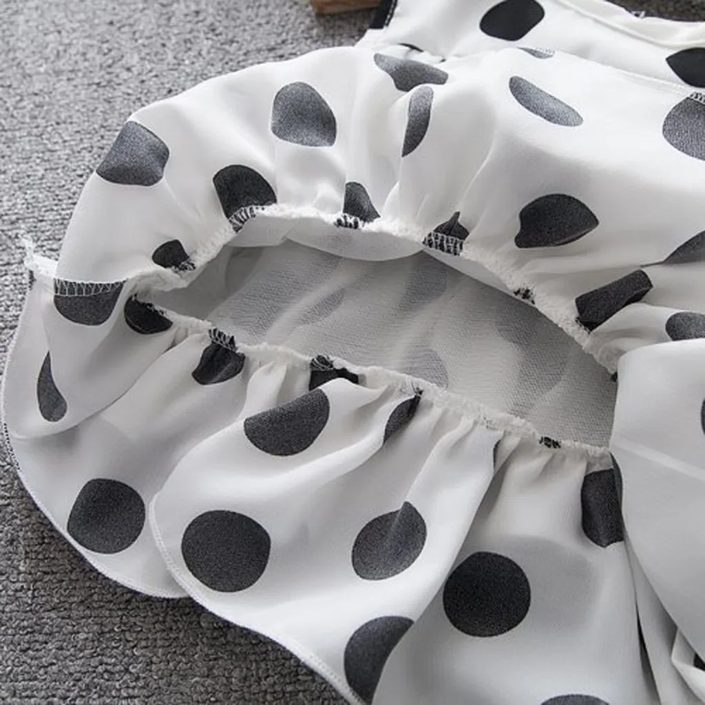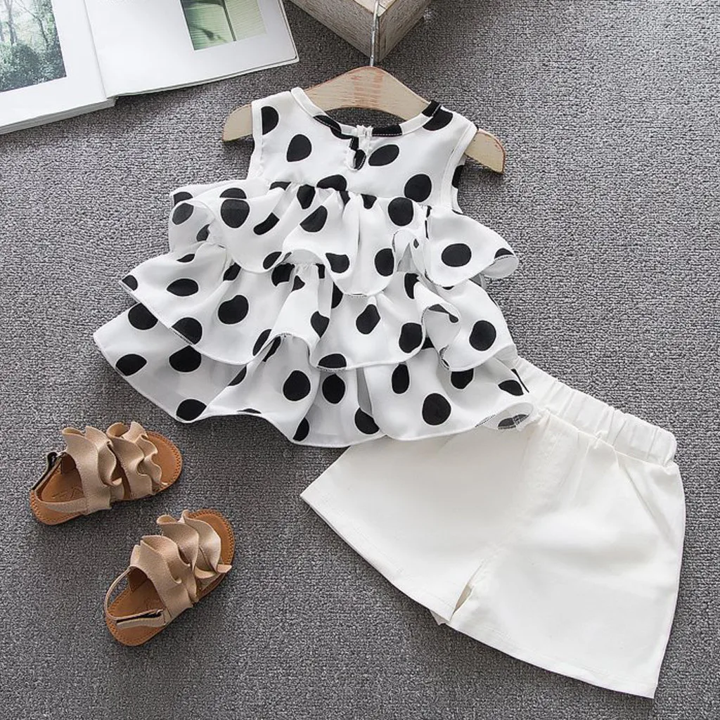 Нарядное платье в горошек без рукавов с оборками для маленьких девочек комплект с топами и шортами