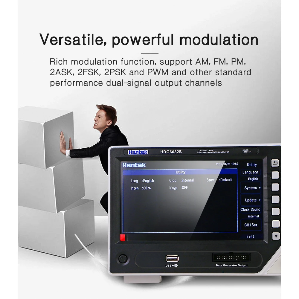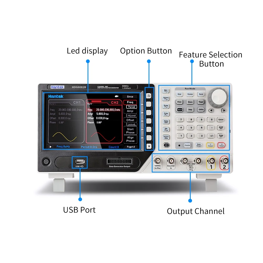 HDG6082B генератор произвольной формы 2 канала 80 МГц 32 функция автоматического измерения USB интерфейс ручные осциллографы