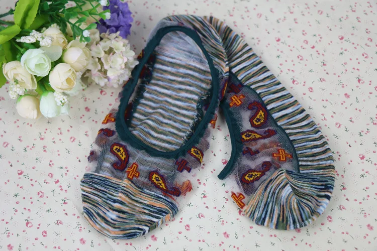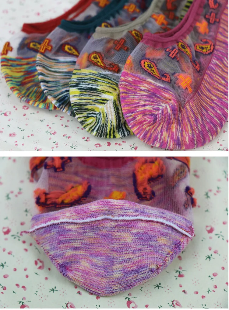Цветные прозрачные сетчатые тапочки; Носки для женщин; Разноцветные дышащие повседневные короткие носки с кешью и орехами Материал: нейлон + акрил Свободный размер.