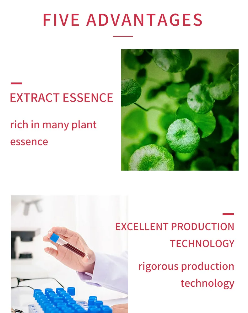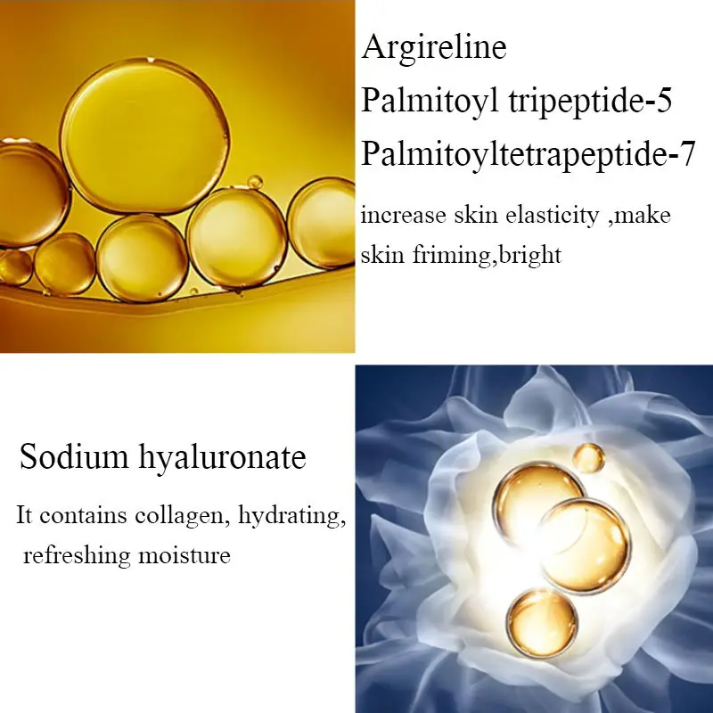 Содержит шесть эссенция с пептидами молекул, может быстро проникать в кожу, способствовать коллагену кожи, эластиновым волокнам и росту гиалуроновой кислоты, содержит коллаген, аминокислоты, различные питательные вещества, может активировать энергию тканей кожи, увлажняет кожу, предотвращает старение и уменьшает появление морщин. Восстанавливает кожу, эффективно улучшает упругость и упругость кожи, делает кожу гладкой, яркой и молодой