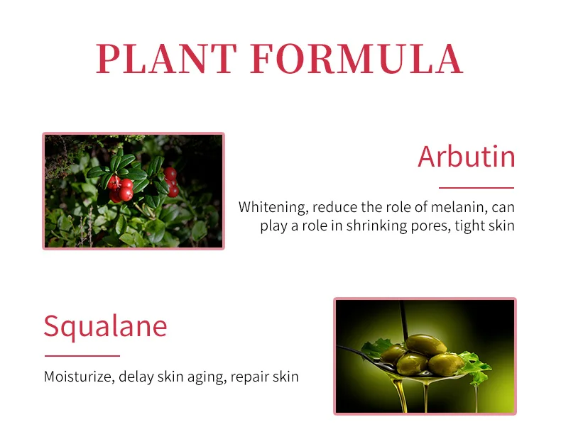 Ингредиент:Вода, арбутин, бутиленгликоль, витамин Е, витамин В5, сквалан, Анжелика, изодецил танонаноат, пропиленгликоль, оливковое масло, глицерин, токоферол ацетат, красный лекарственный спирт, ксантановая резинка, метилен вкус, дикалий глициризинт, гиалуронат натрия