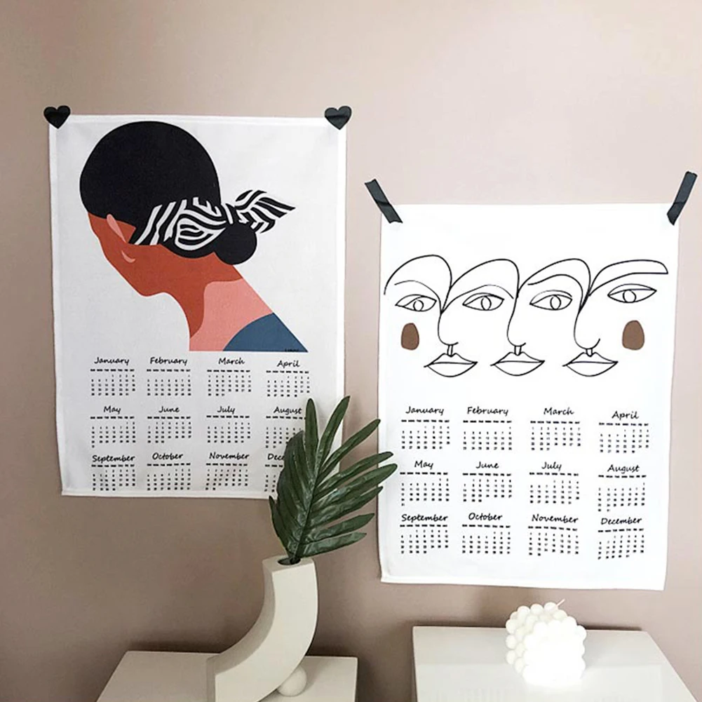 2020 календарь из ткани скандинавский минималистский настенный декор расписание фон тканевое украшение, 39х48см