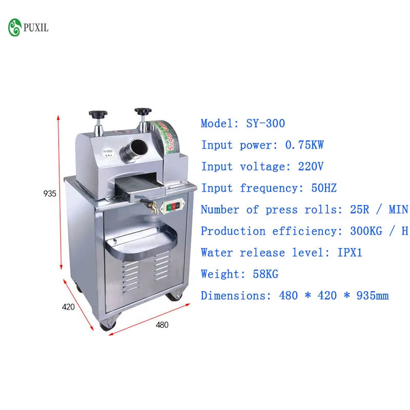 Модель: SY-300 Вход мощность: 0.75KW Входное напряжение: 220 В Входная частота: 50 Гц Количество рулонов Пресса: 25R/MIN Производительность: 300 кг/ч Уровень высвобождения воды: IPX1 Вес: 58 кг Размеры: 480*420*935 мм