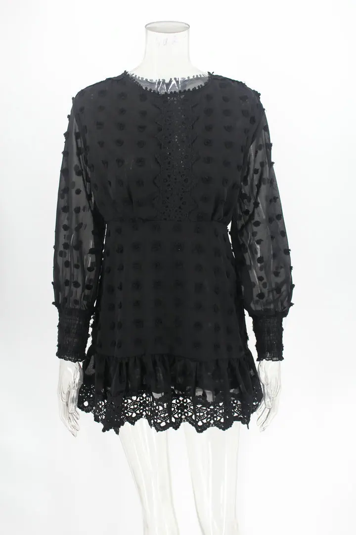 Luzuzi в винтажном стиле с изображением черного вызывающего кружевного Короткое платье женское длинное платье с рукавами-фонариками в горошек женский роскошный тонкий мини-платья для вечеринок vestidos