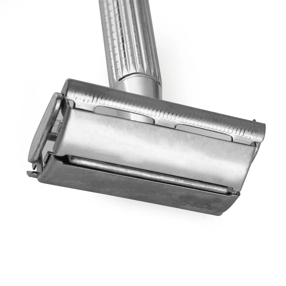 Мужская традиционная хромированная ручная бритва с двумя краями для влажного бритья, 1 лезвие в комплекте, чехол для путешествий, уход за волосами и бородой