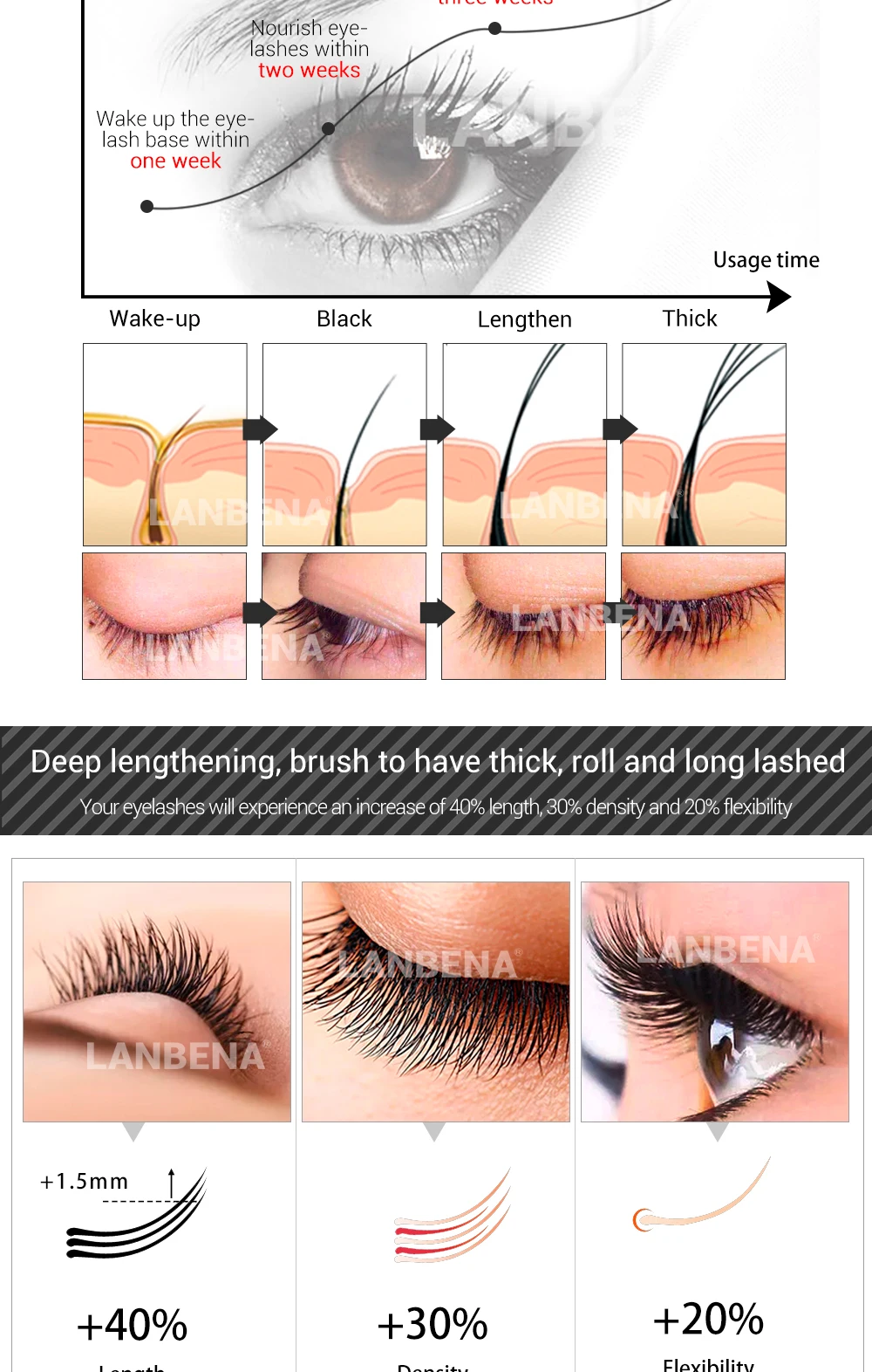 LANBENA, сыворотка для роста ресниц, 7 дней, для увеличения объема ресниц, более толстые ресницы и ресницы