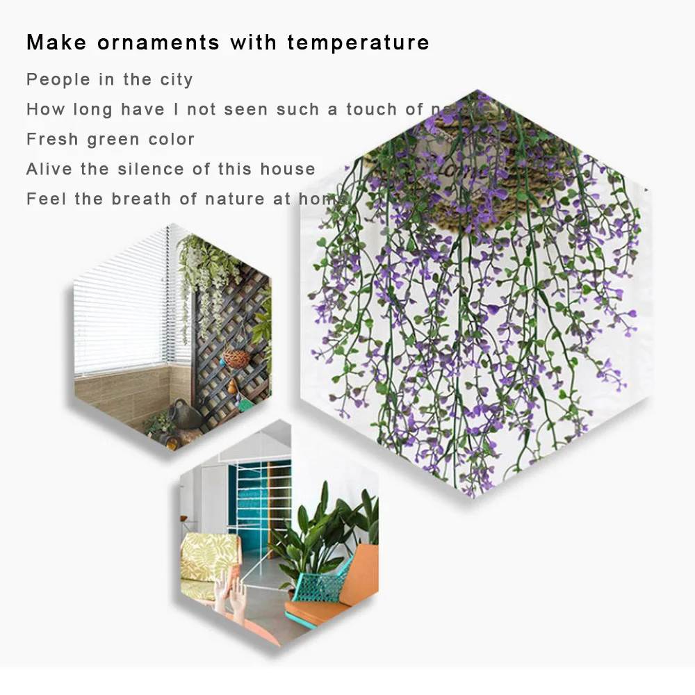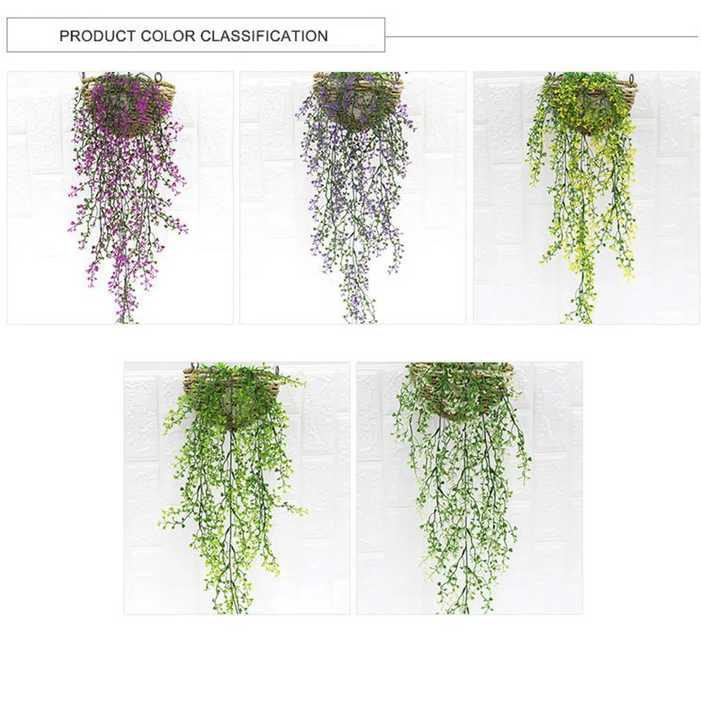 Длинные Зеленые и ярко-фиолетовые листья DIY обеспечивают естественный вид, который может держать вас в хорошем настроении. Поддельные цветы не выцветают, им не нужна вода или солнечный свет, они постоянно цветут и добавляют блеск в ваш дом. Цветы и листья реалистичны по форме и тонкой по текстуре и могут храниться в течение длительного времени без деформации. Цвета однородные и простые, но не простые. Ветви мягкие и естественно растягиваются, и эффект подвешивания хорош, что обеспечивает действительно высокую имитацию сенсорного и сенсорного опыта. Материал, экологически чистый зеленый пластиковый материал, четкие линии, высокая степень имитации, красивая природа, ежедневный уход может легко удалить пыль. Спецификация:5 головок и 45 глаз из ротанга Yueyi grass * 1