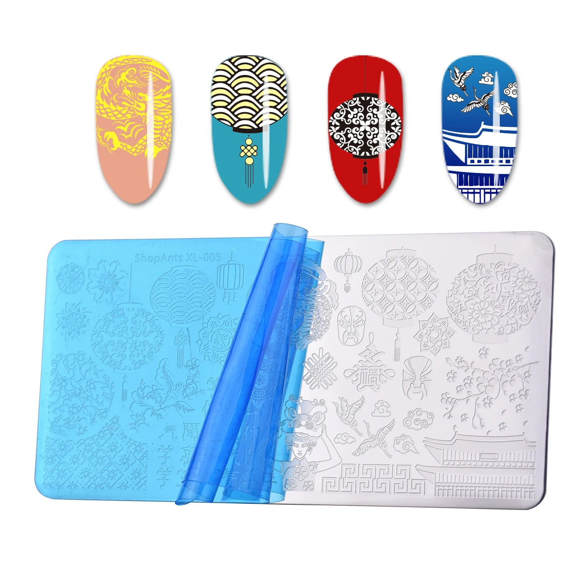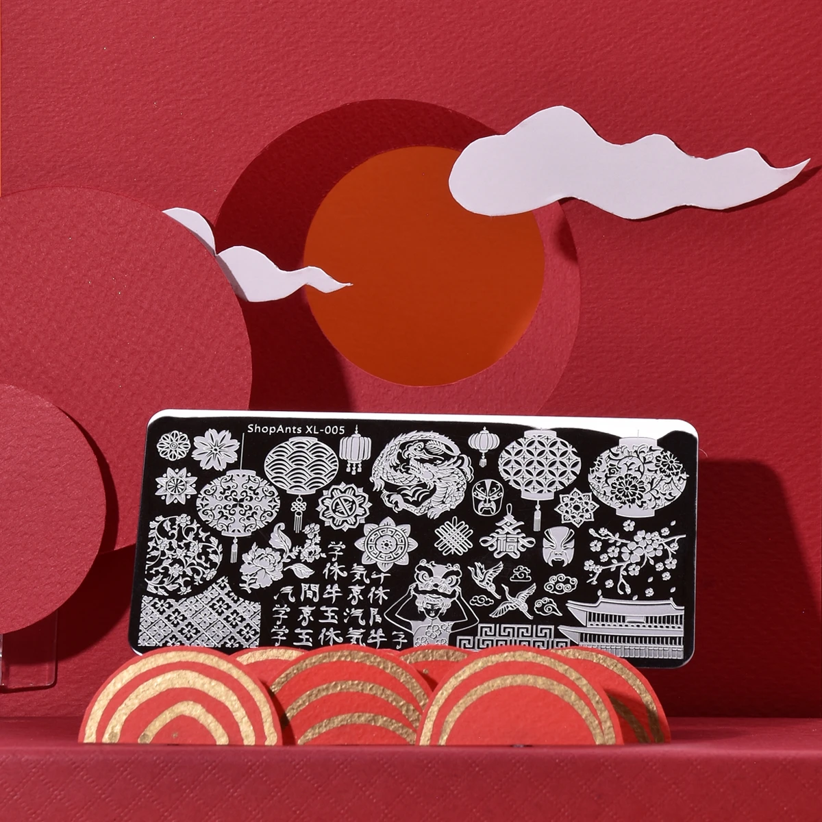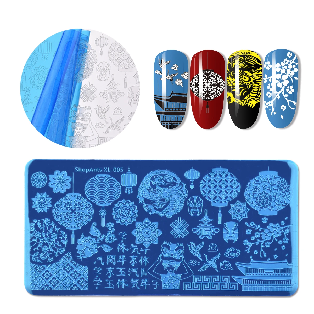 Стемпинг для ногтей ShopAnts, китайские иероглифы, элементы фонаря, изображение природы, миры, трафарет для ногтей, штамп для дизайна ногтей, шаблон XL-005