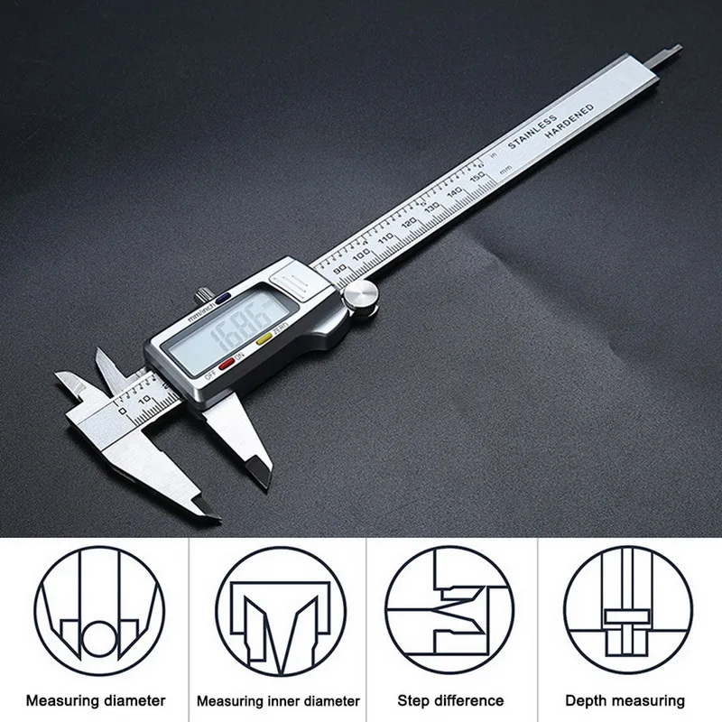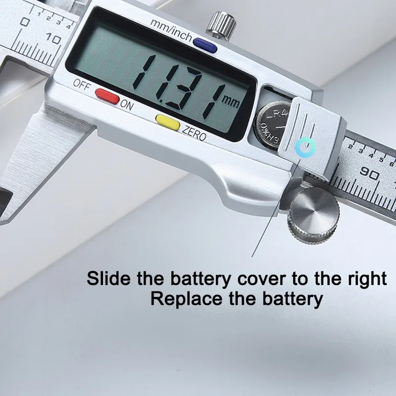 Посылка: 1 штангенциркуль, 1 руководство пользователя, 1 кнопочный элемент, 1 чехол для хранения